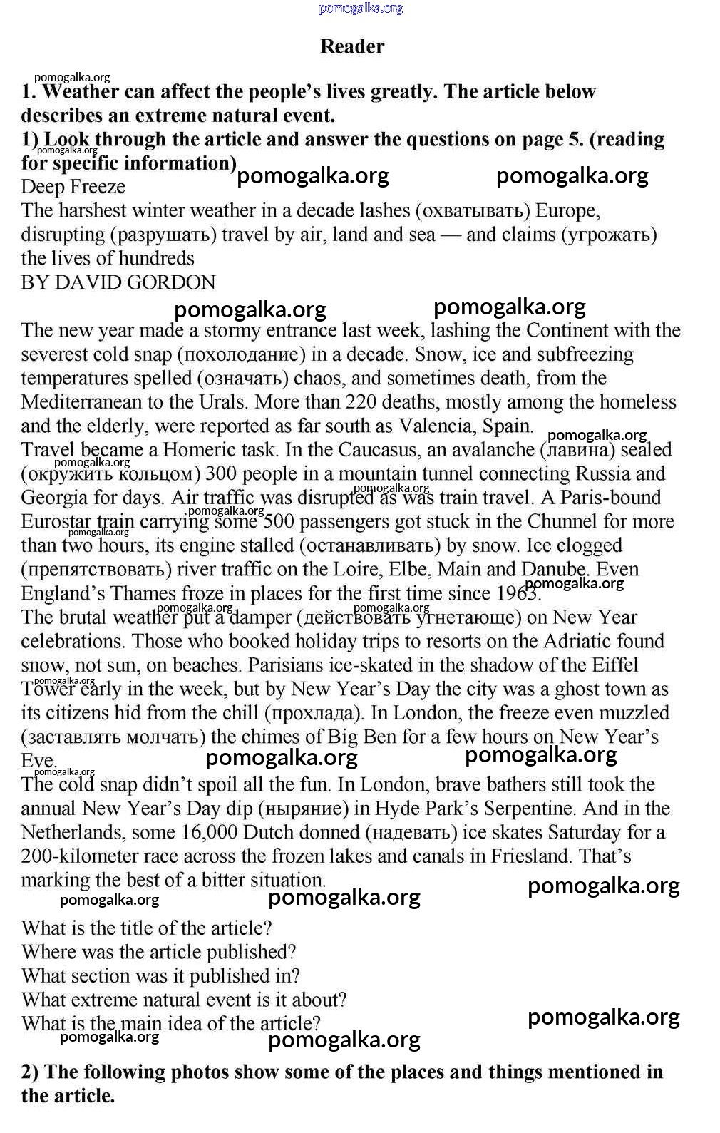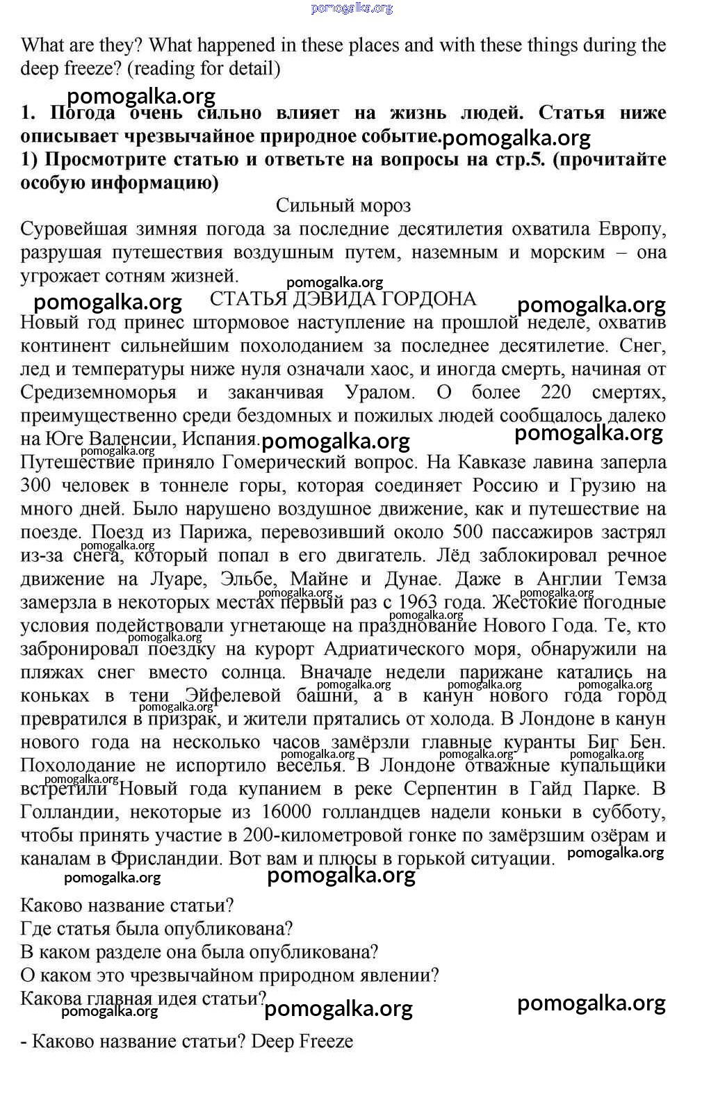 Готовые ответы - Английский язык 10-11 класс Кузовлёв В.П. - reader unit 1 1