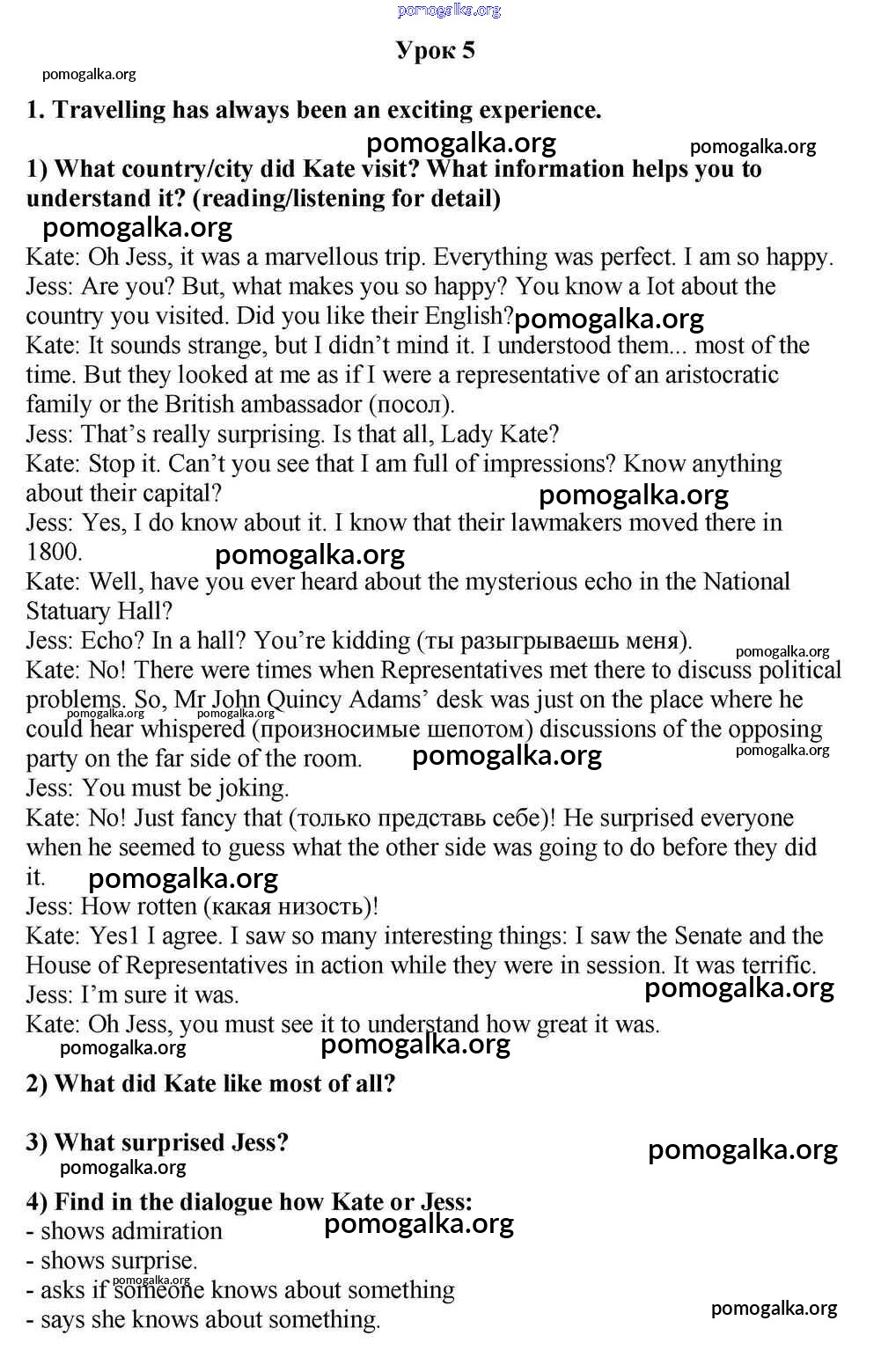 Готовые ответы - Английский язык 10-11 класс Кузовлёв В.П. - lesson 5 unit 2 1