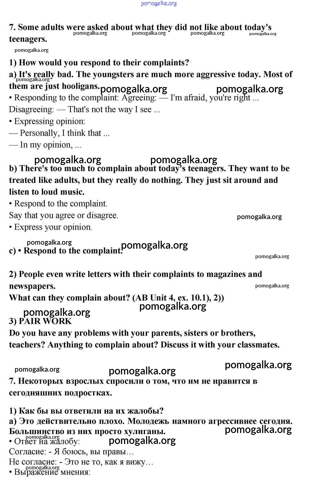 Готовые ответы - Английский язык 10-11 класс Кузовлёв В.П. - lesson 5 unit 4 7