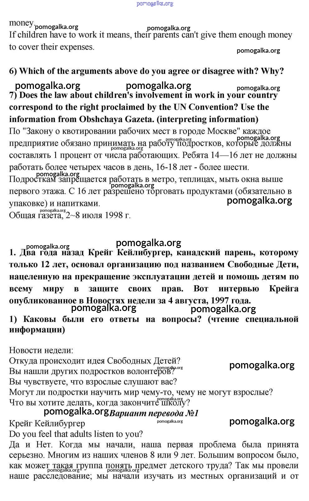 Готовые ответы - Английский язык 10-11 класс Кузовлёв В.П. - reader unit 4 1
