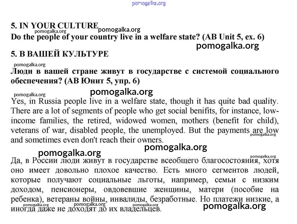 Готовые ответы - Английский язык 10-11 класс Кузовлёв В.П. - lesson 5 unit 5 5
