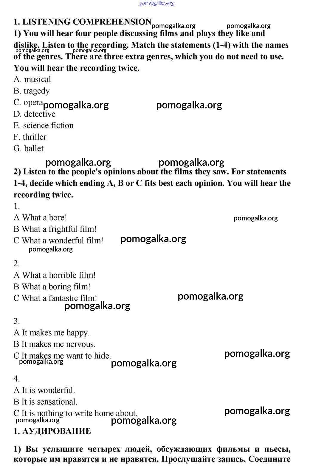 Готовые ответы - Английский язык 10-11 класс Кузовлёв В.П. - listening unit 6 1