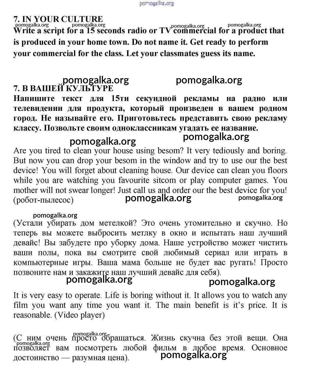 Готовые ответы - Английский язык 10-11 класс Кузовлёв В.П. - lesson 2 unit 7 7