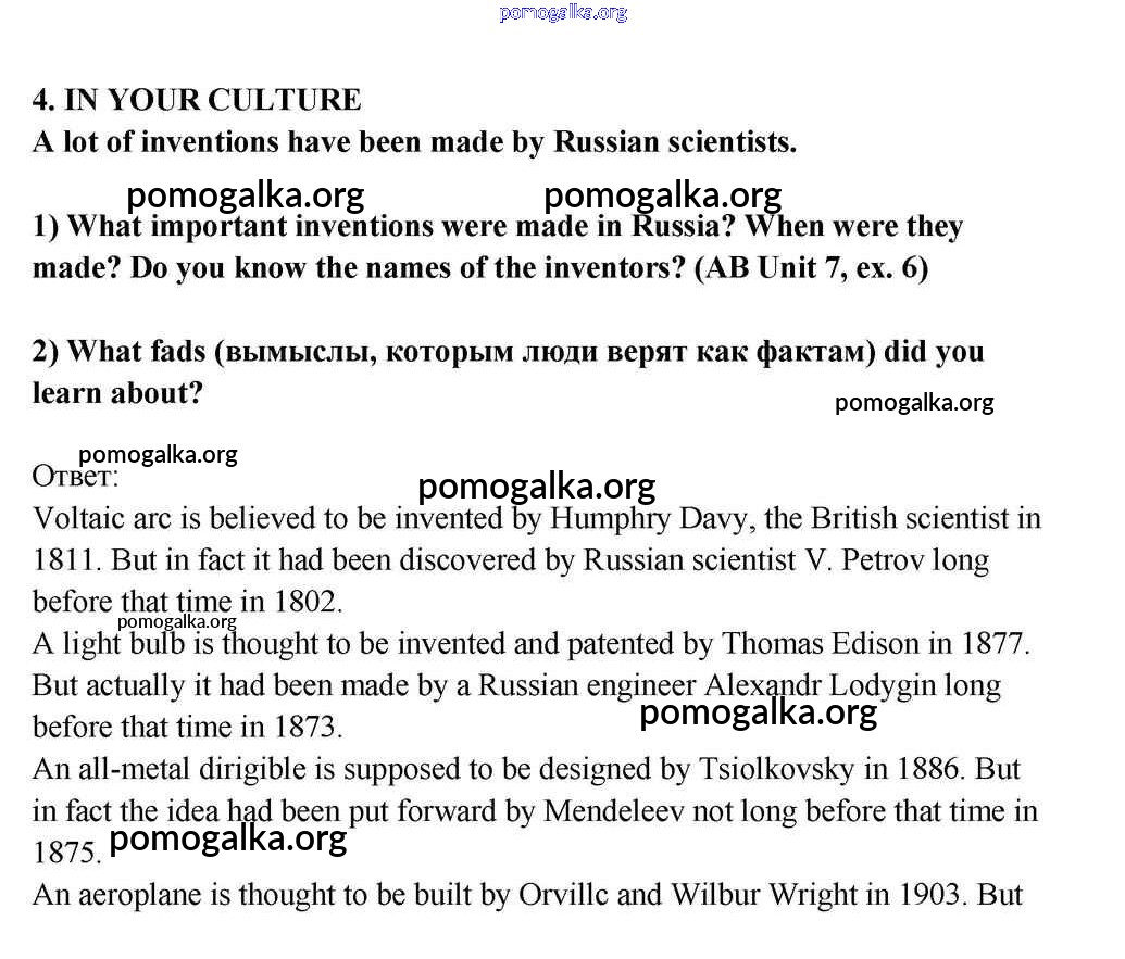 Готовые ответы - Английский язык 10-11 класс Кузовлёв В.П. - lesson 3 unit 7 4