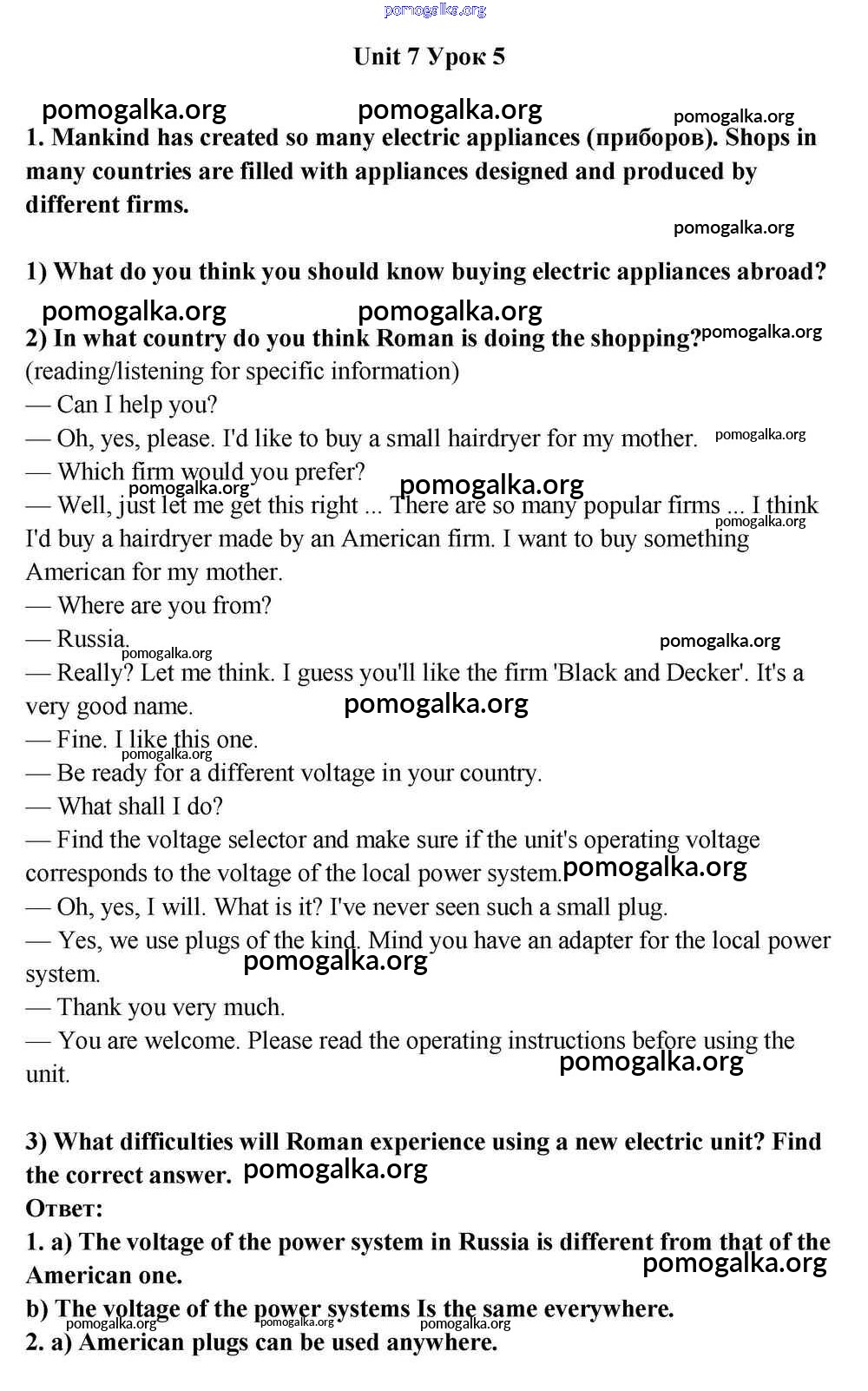 Готовые ответы - Английский язык 10-11 класс Кузовлёв В.П. - lesson 5 unit 7 1