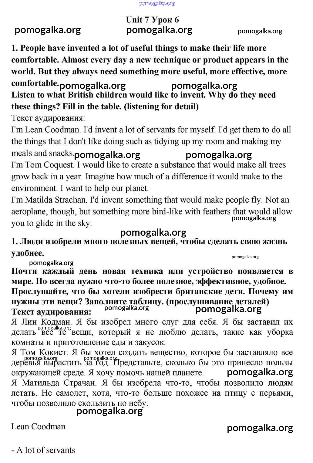 Готовые ответы - Английский язык 10-11 класс Кузовлёв В.П. - lesson 6 unit 7 1