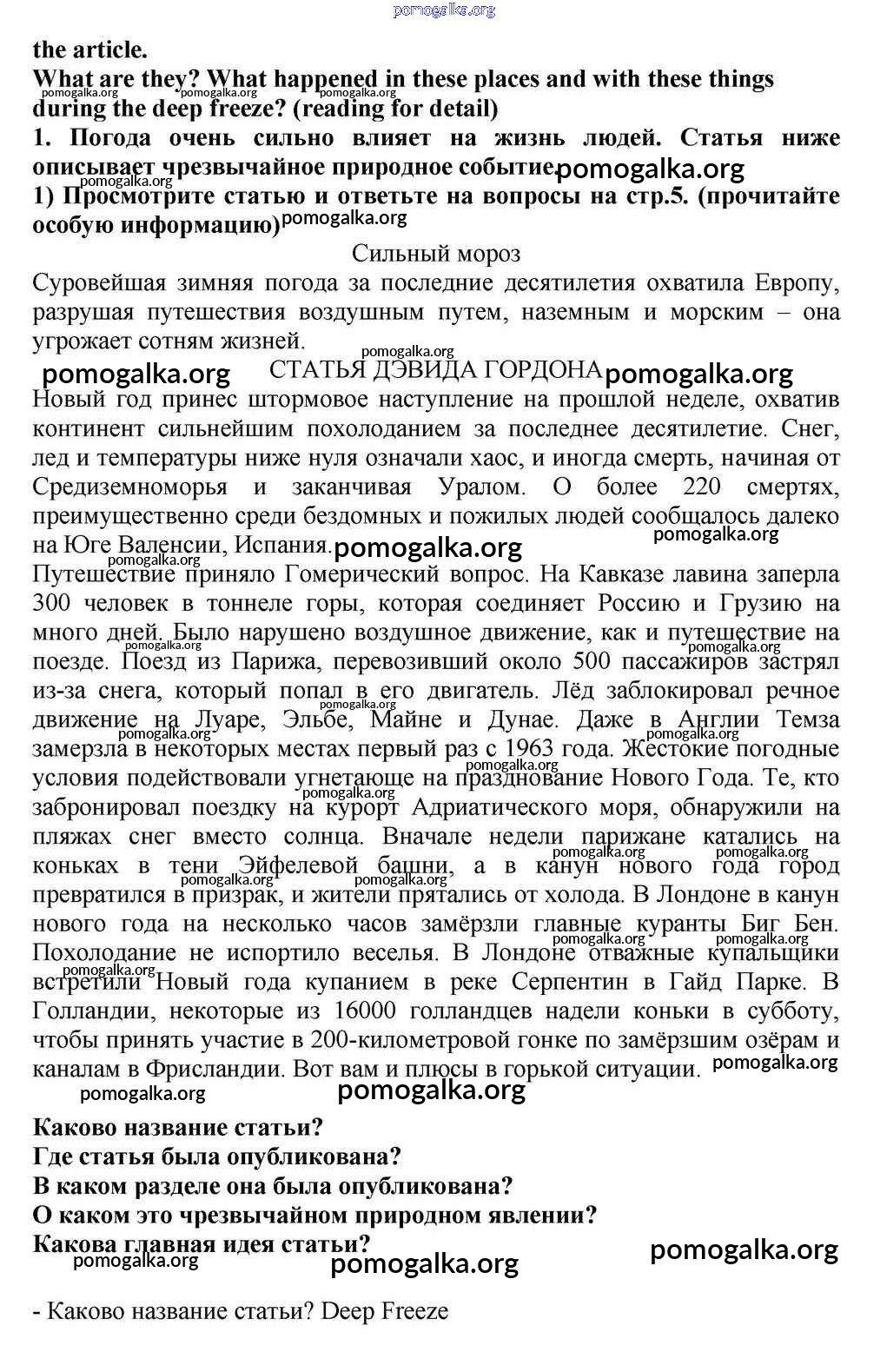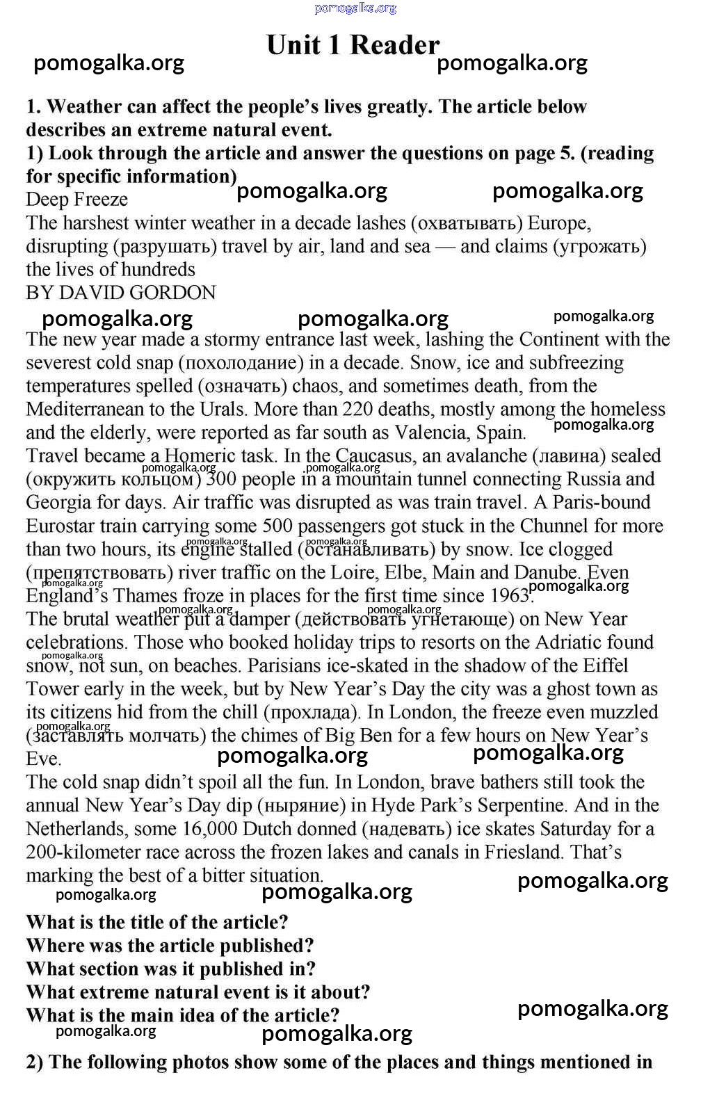 Готовые ответы - Английский язык 10-11 класс Кузовлёв В.П. - unit 1 reader 1