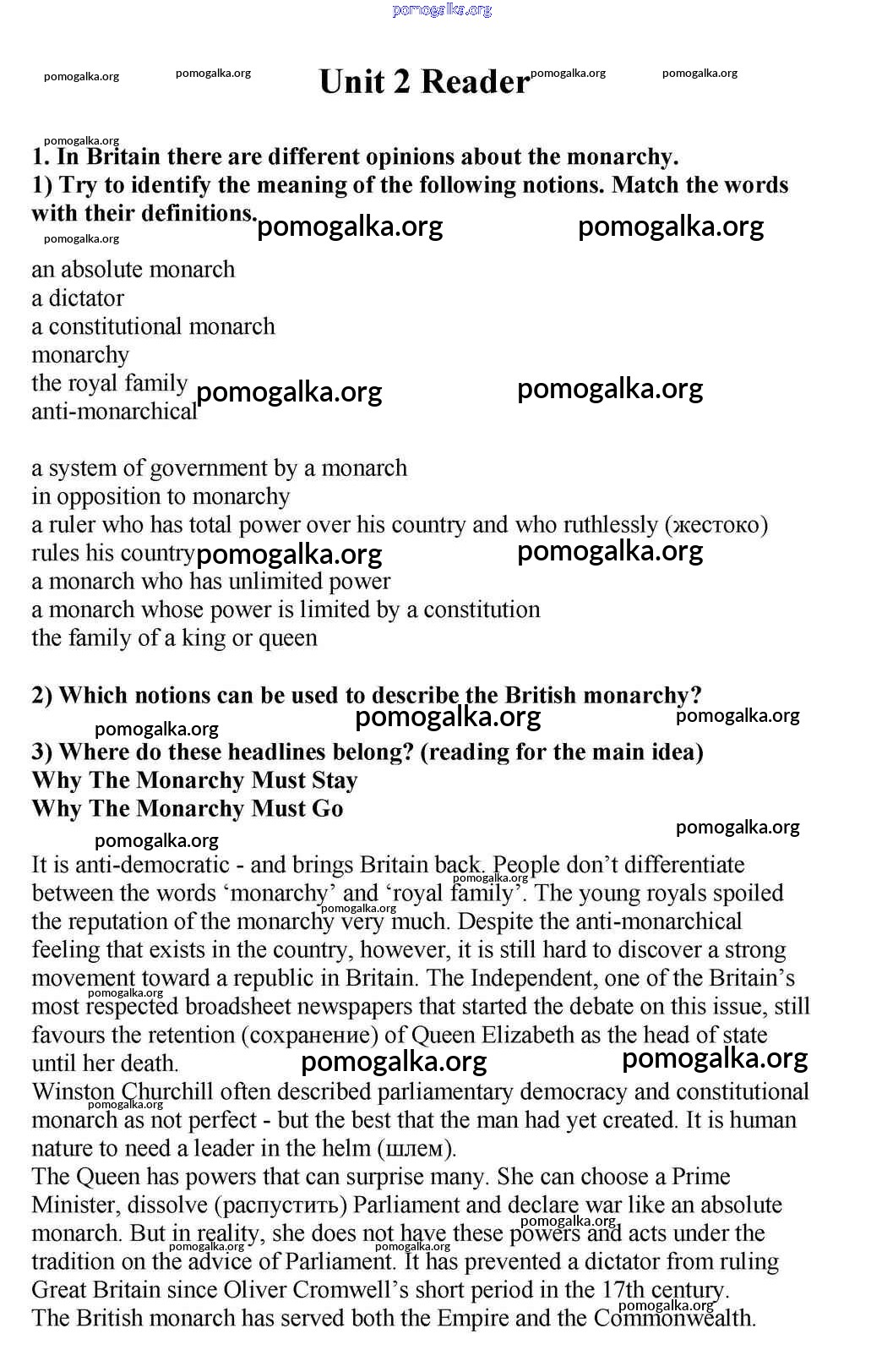 Готовые ответы - Английский язык 10-11 класс Кузовлёв В.П. - unit 2 reader 1
