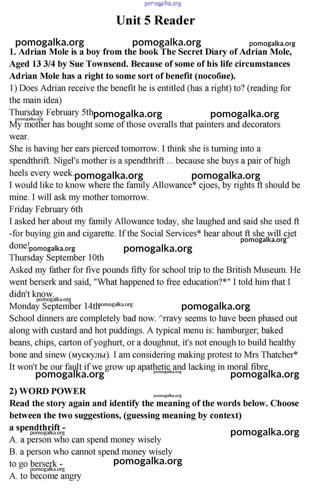 Готовые ответы - Английский язык 10-11 класс Кузовлёв В.П. - unit 5 reader 1
