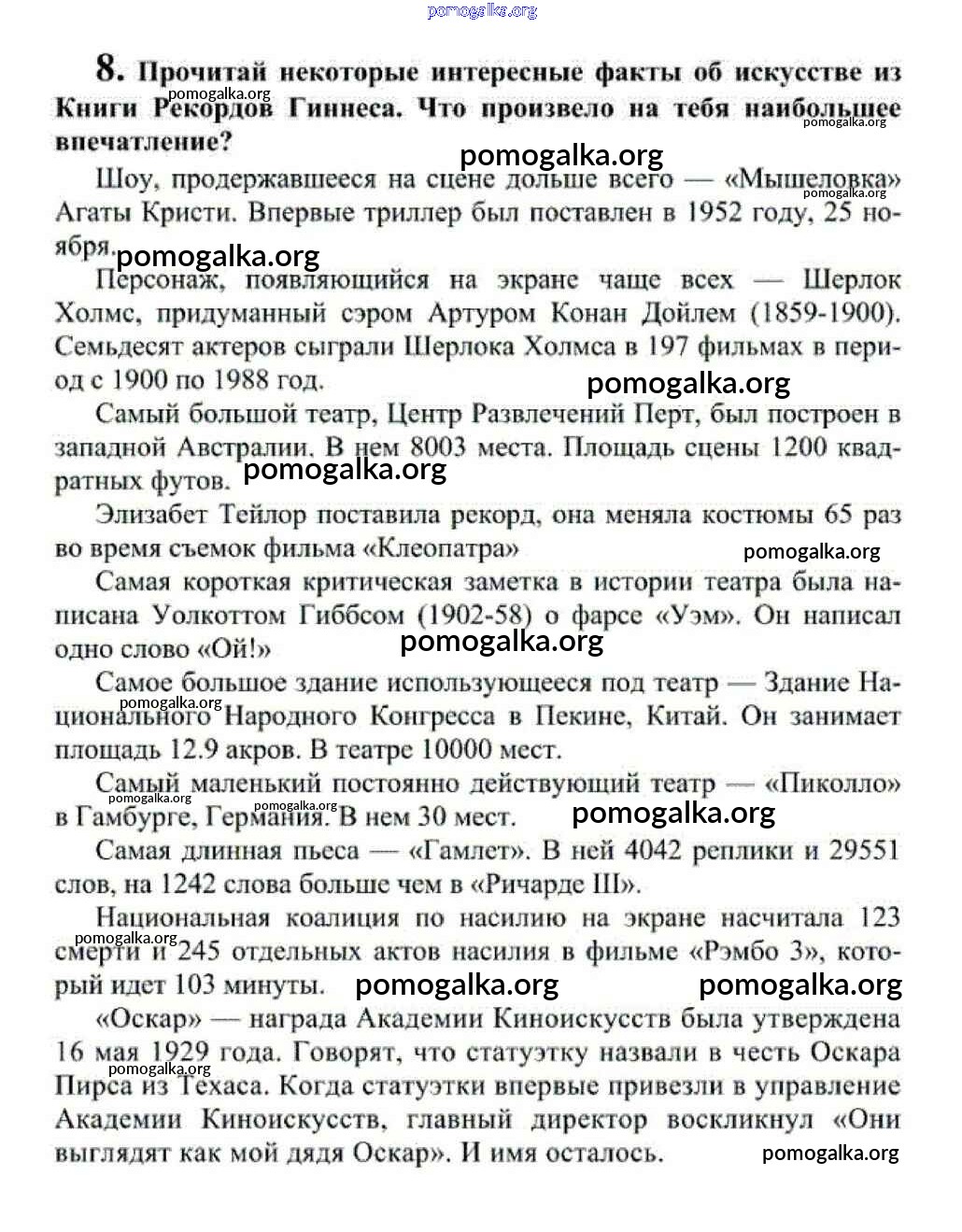 Готовые ответы - Английский язык 10-11 класс Кузовлёв В.П. - unit 6 reader 8