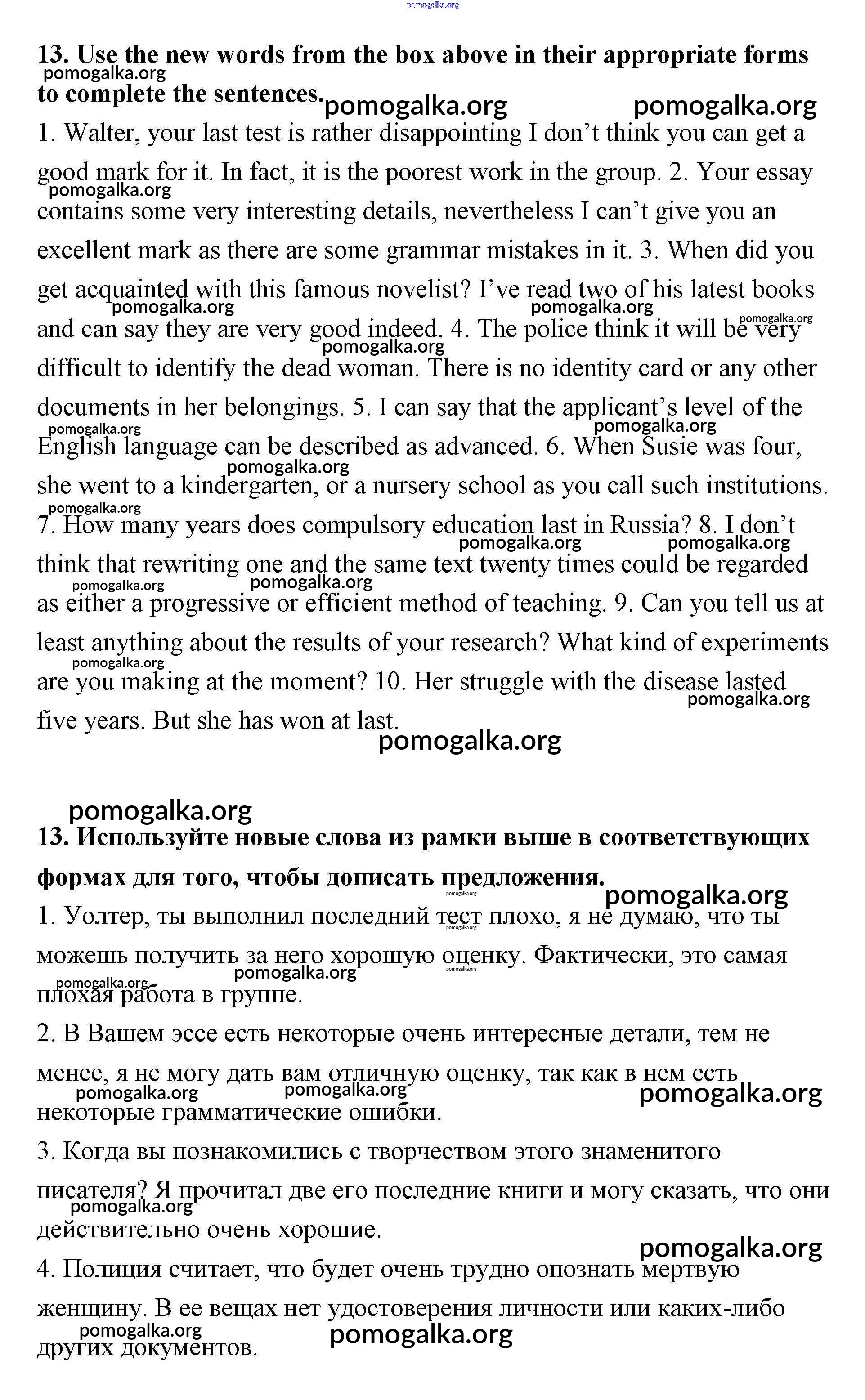 Готовые ответы - Английский язык 11 класс рабочая тетрадь Афанасьева Rainbow - unit 1 13