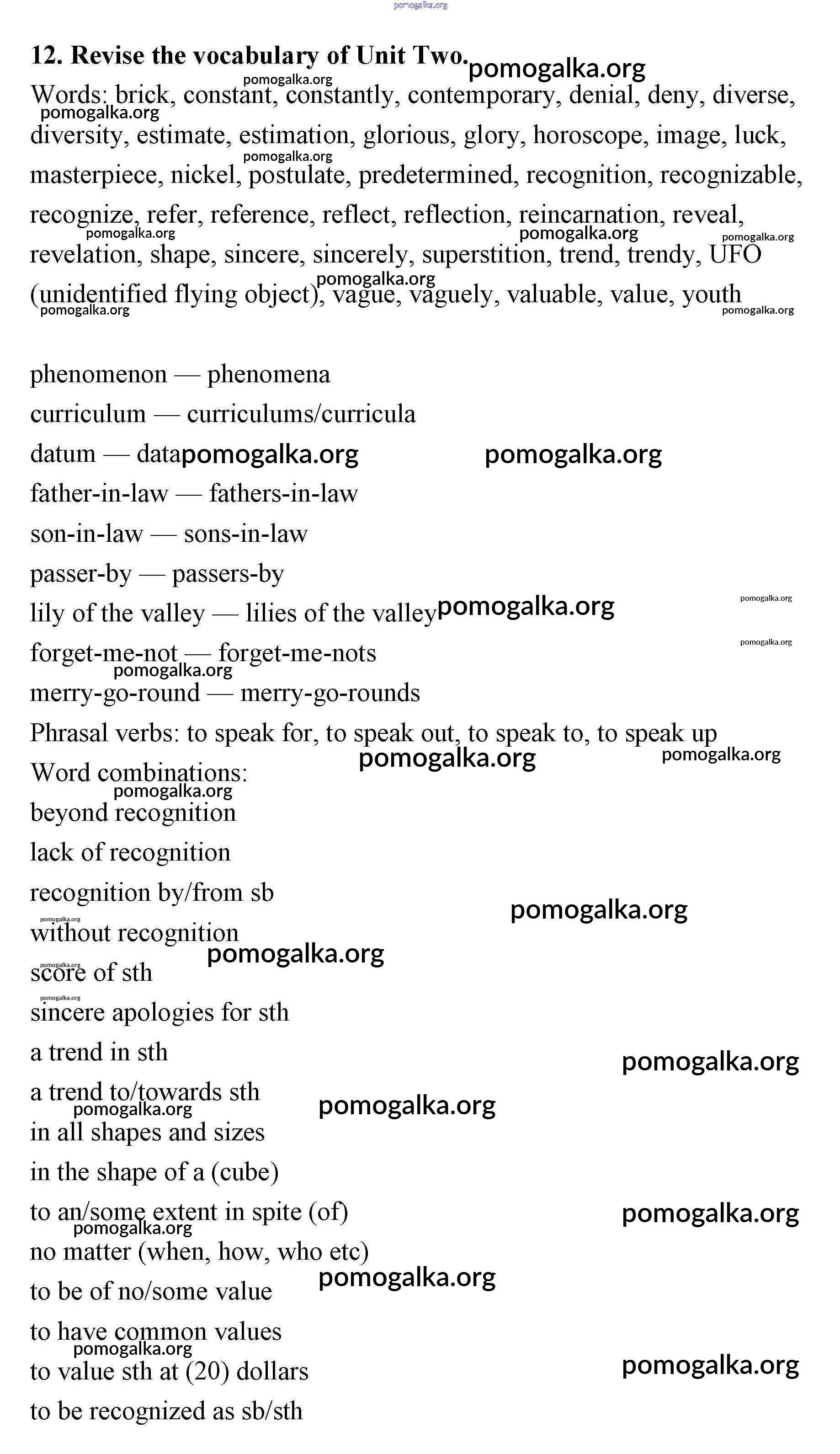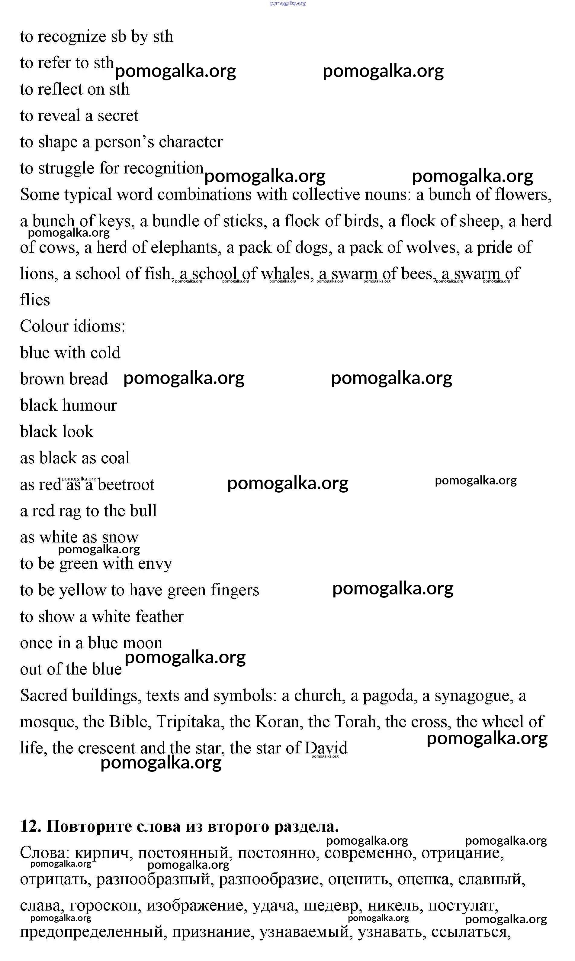 Готовые ответы - Английский язык 11 класс рабочая тетрадь Афанасьева Rainbow - unit 2 12