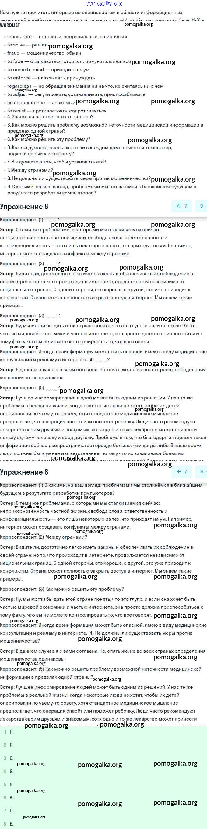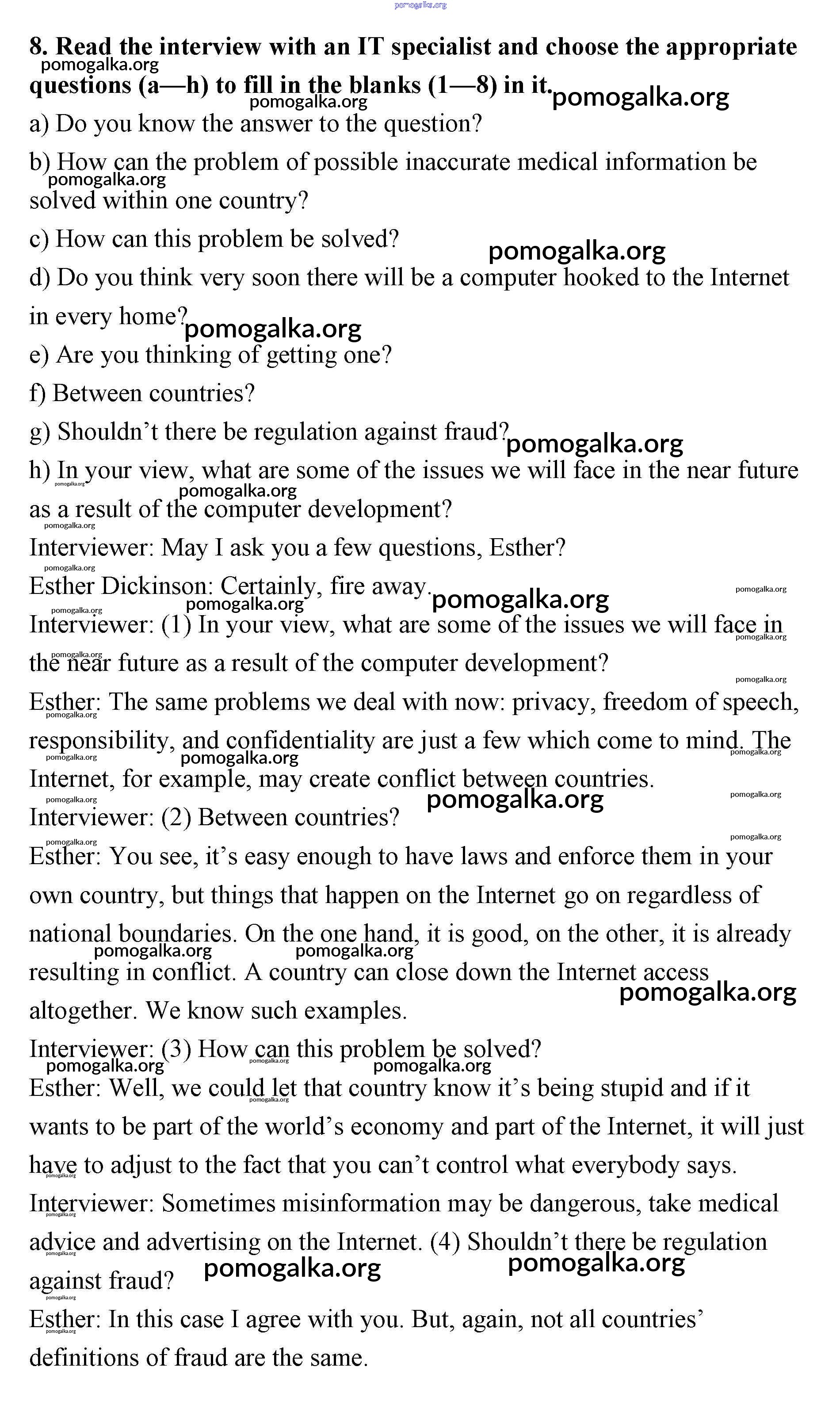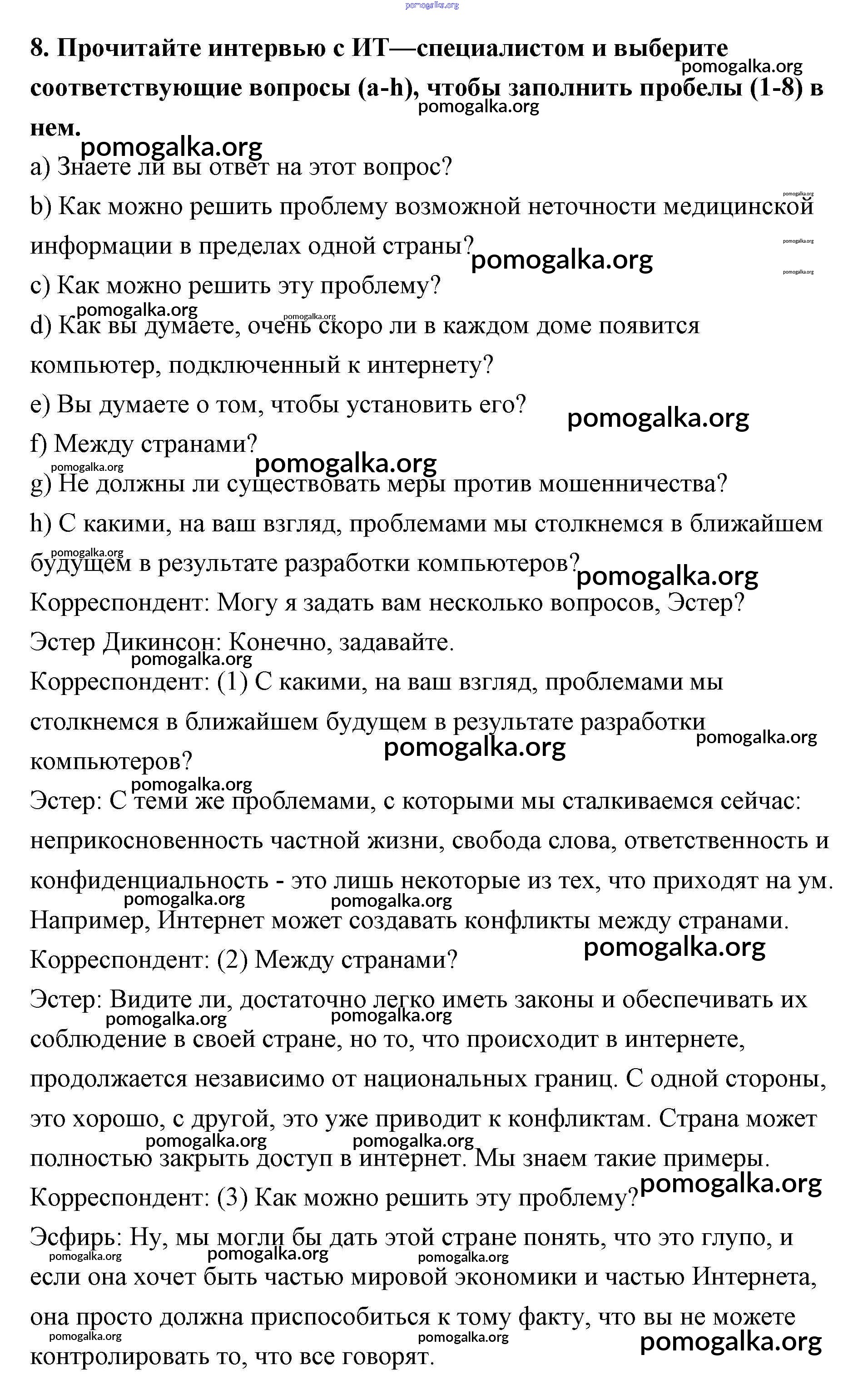 Готовые ответы - Английский язык 11 класс рабочая тетрадь Афанасьева Rainbow - unit 3 8