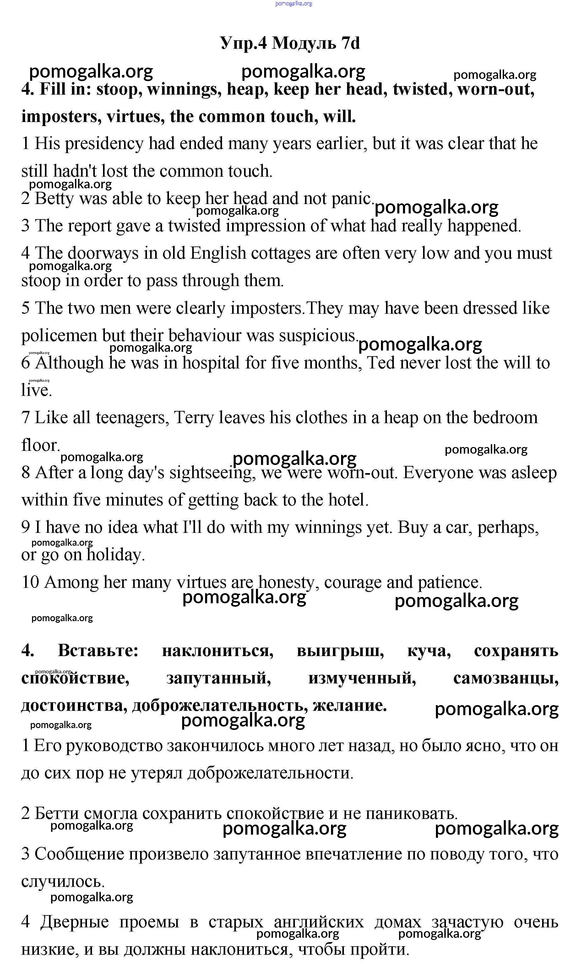 Готовые ответы - Английский язык 11 класс рабочая тетрадь Эванс Spotlight - 7d module 7 4