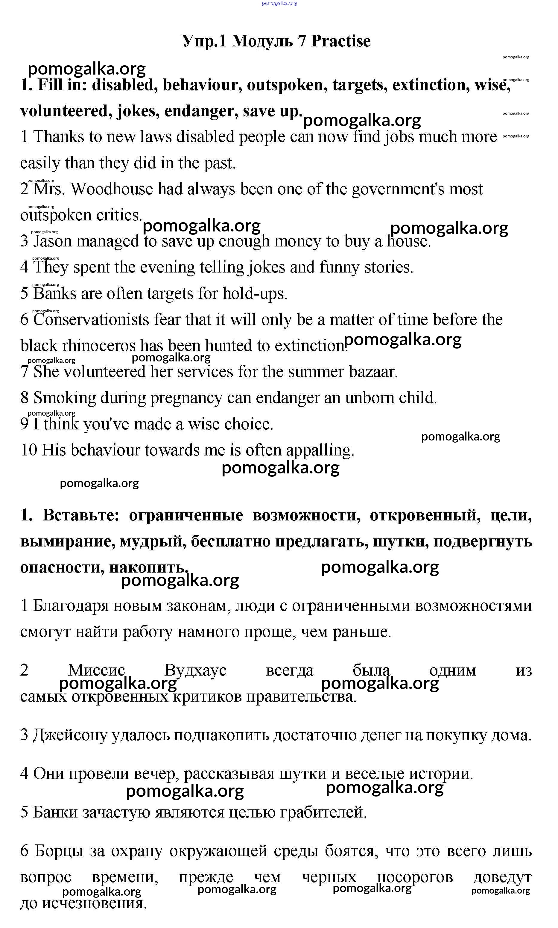 Готовые ответы - Английский язык 11 класс рабочая тетрадь Эванс Spotlight - vocabulary practice module 7 1