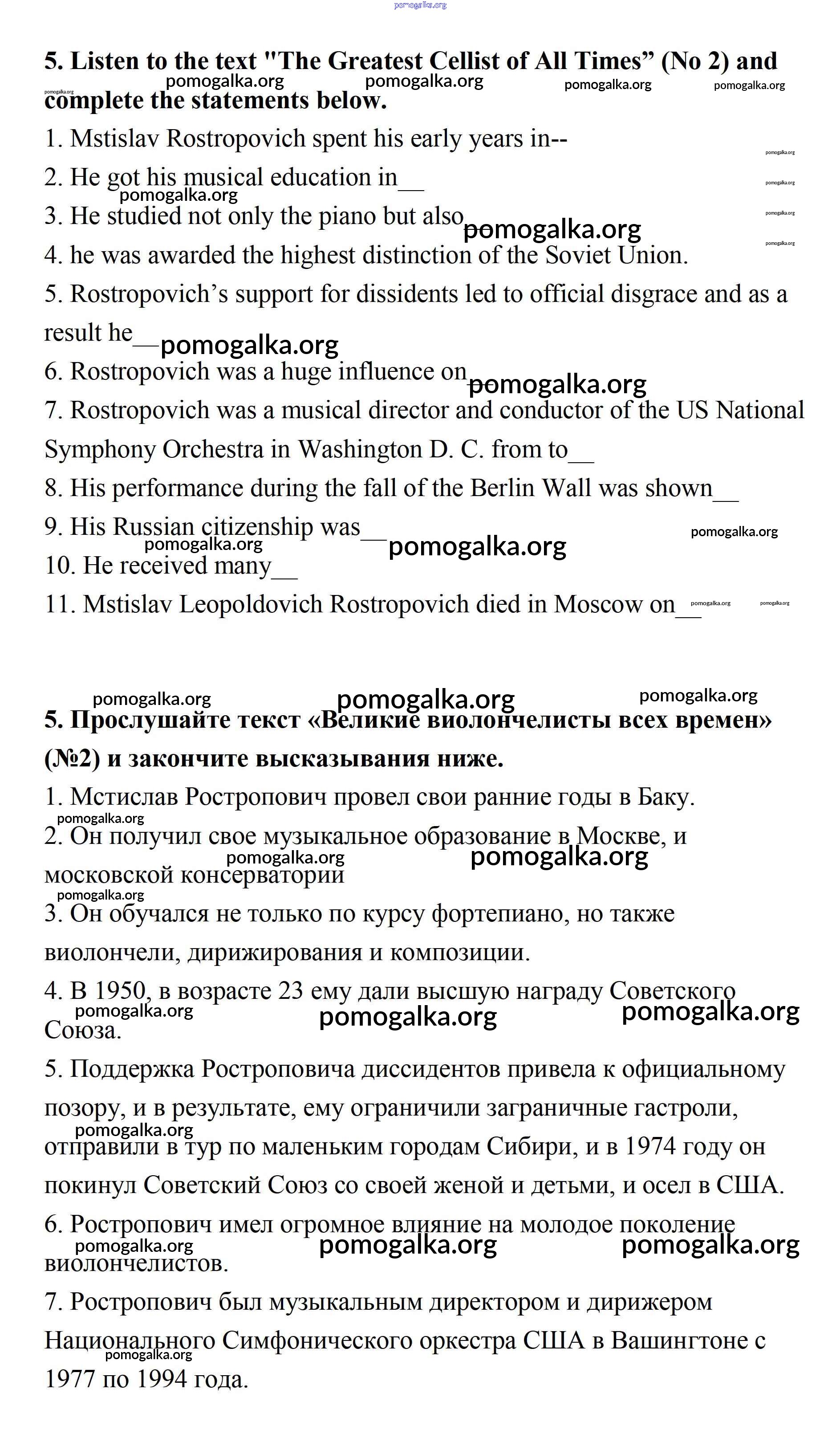 Готовые ответы - Английский язык 11 класс Афанасьева (углубленный уровень) - unit 1. sounds of music 5