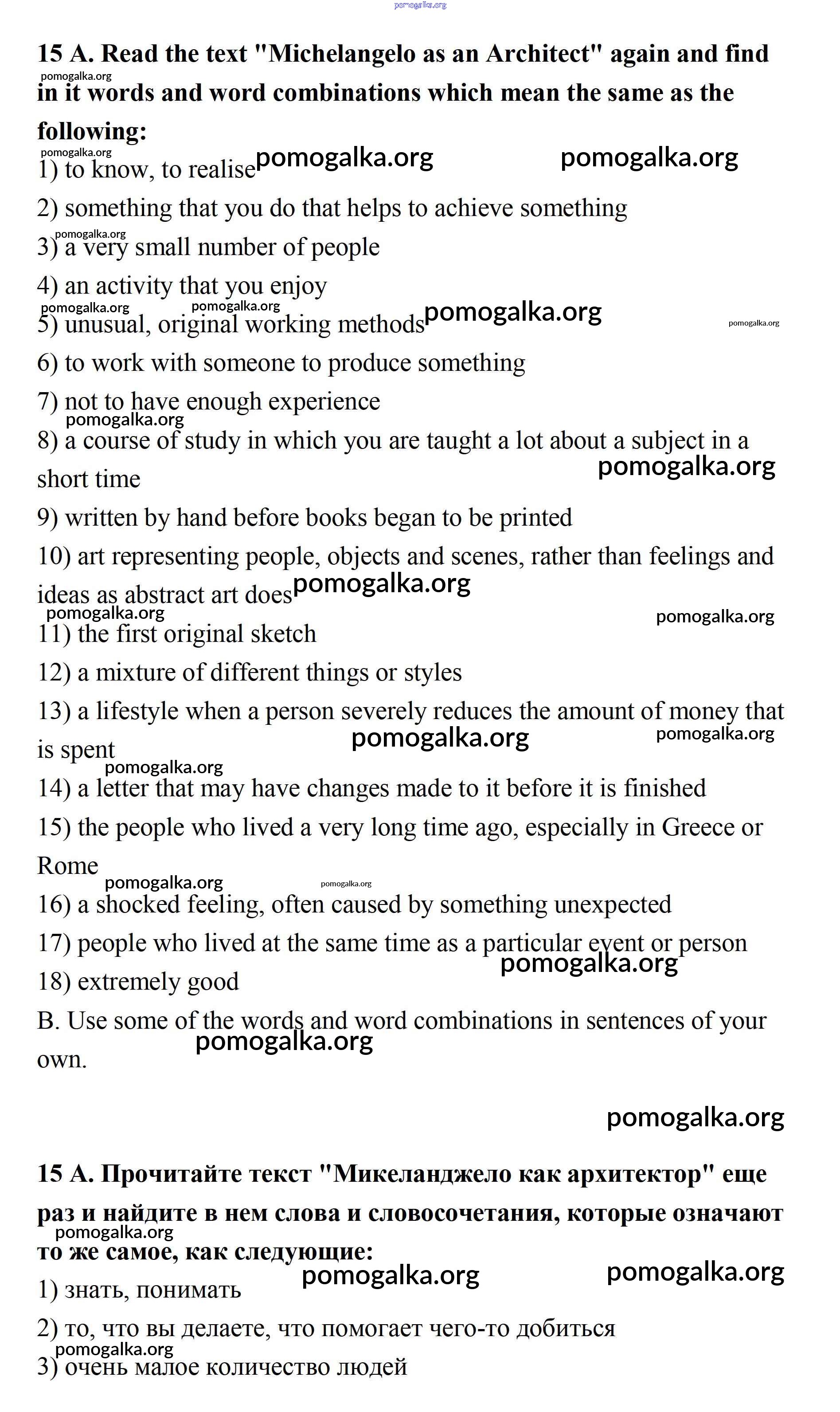 Готовые ответы - Английский язык 11 класс Афанасьева (углубленный уровень) - unit 2. town and its architecture 15