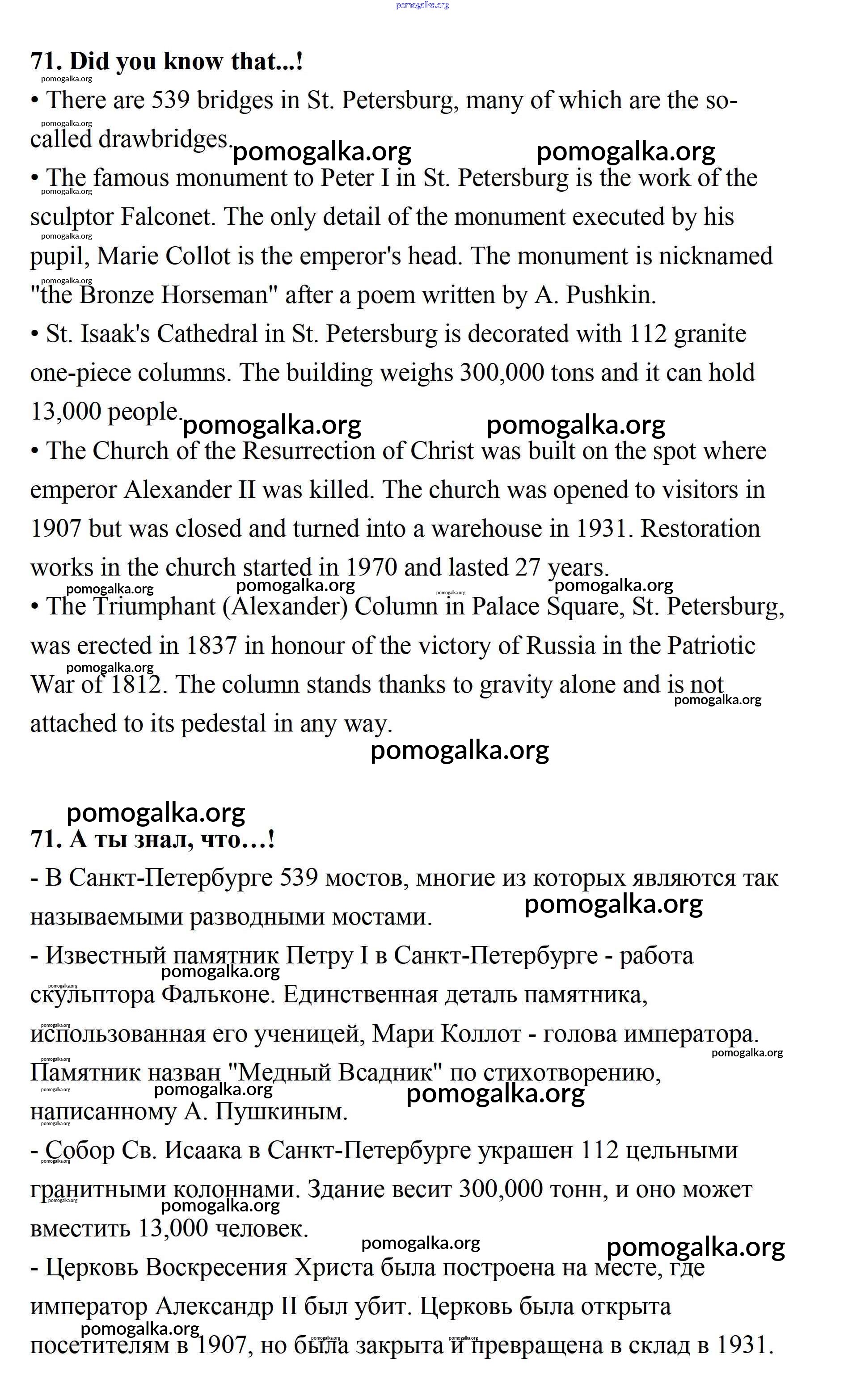 Готовые ответы - Английский язык 11 класс Афанасьева (углубленный уровень) - unit 2. town and its architecture 71
