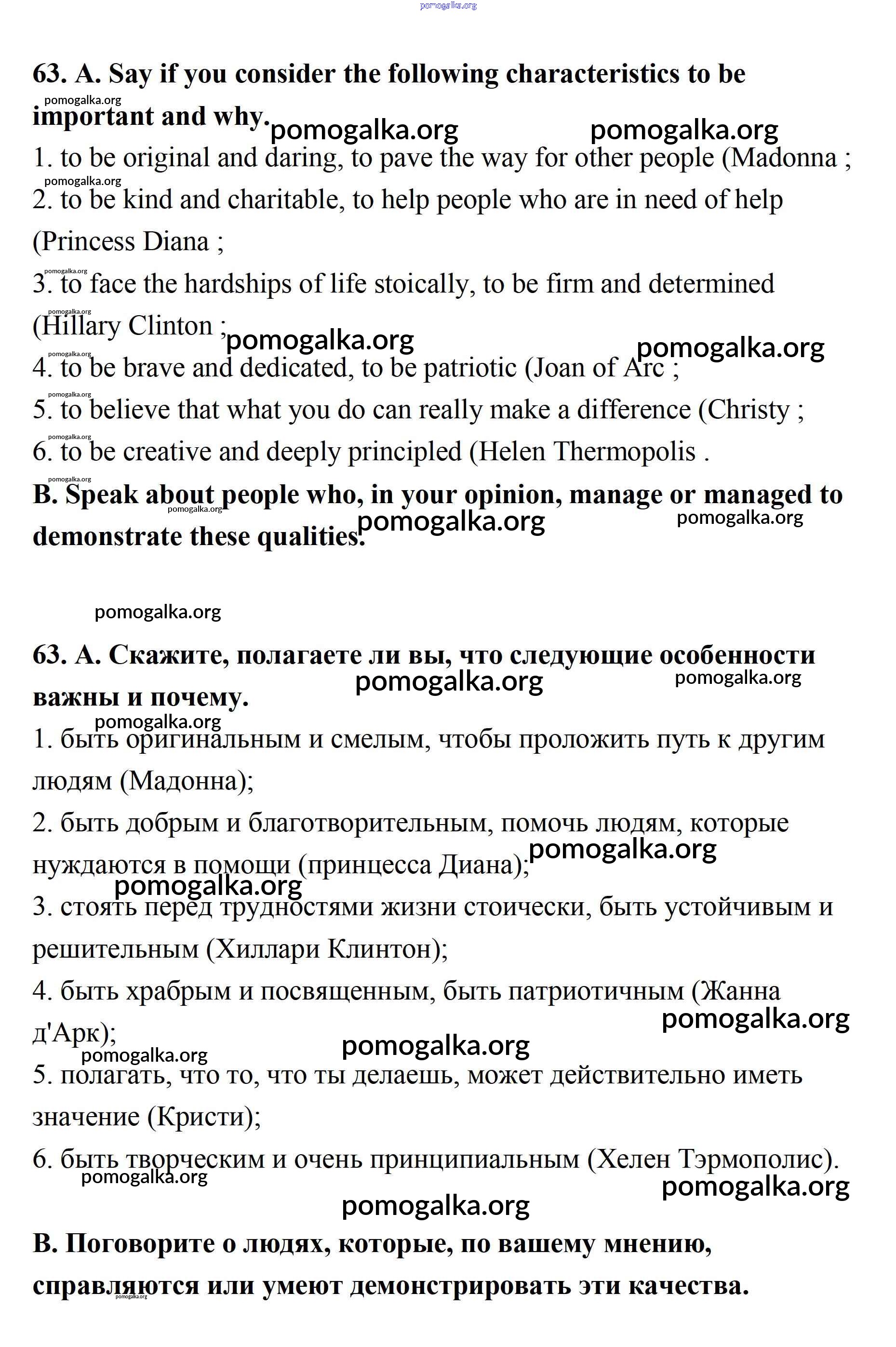 Готовые ответы - Английский язык 11 класс Афанасьева (углубленный уровень) - unit 4. man as the greatest wonder of the world 63