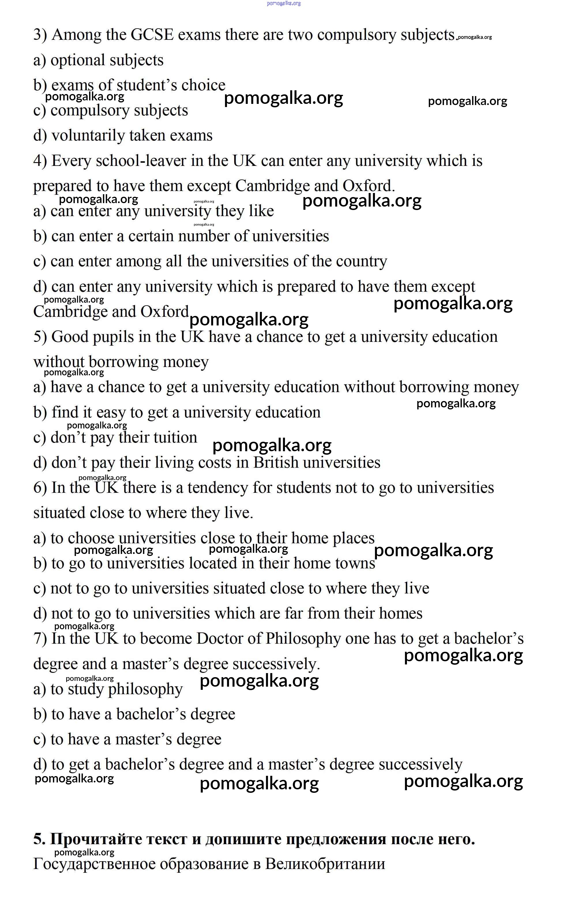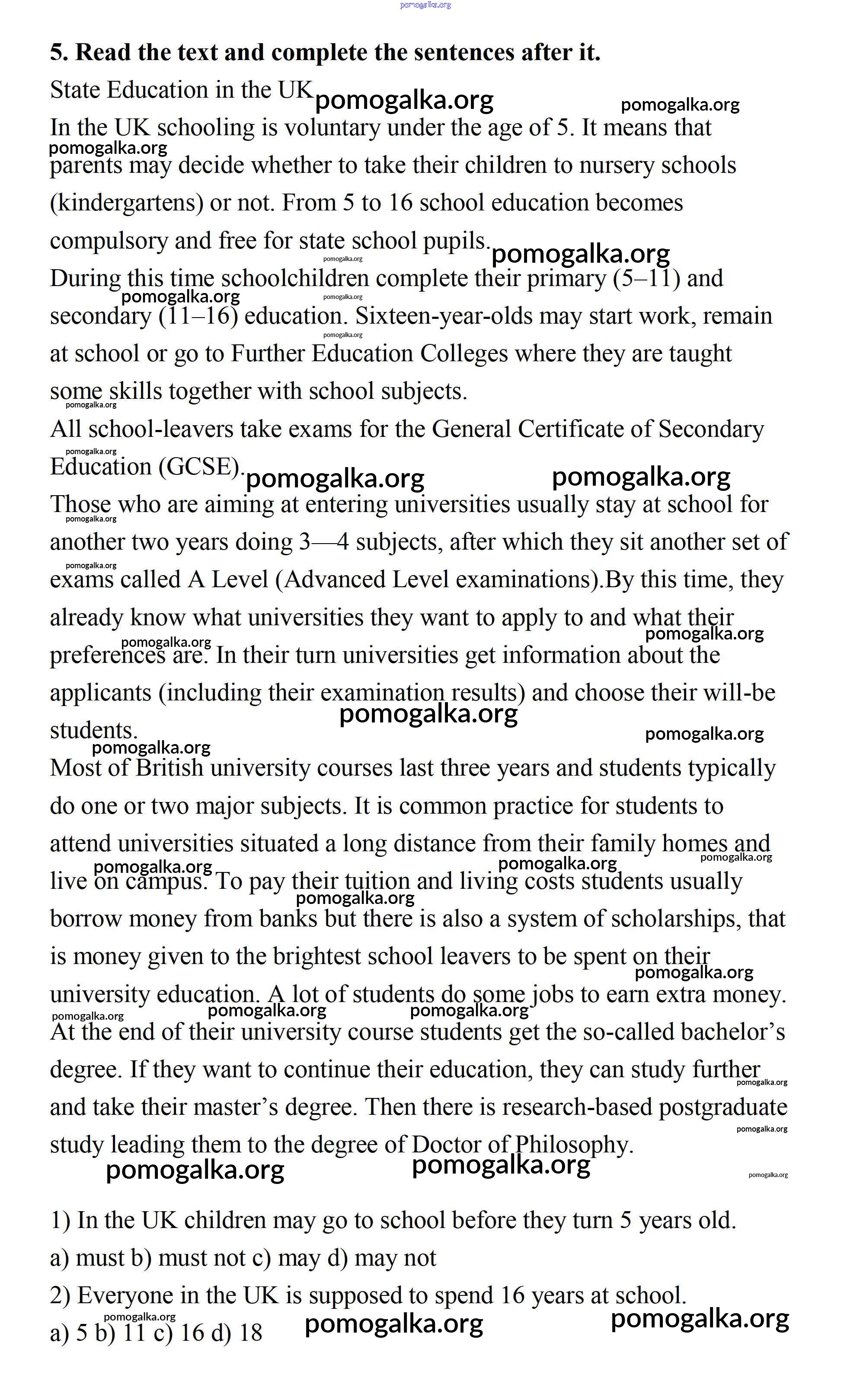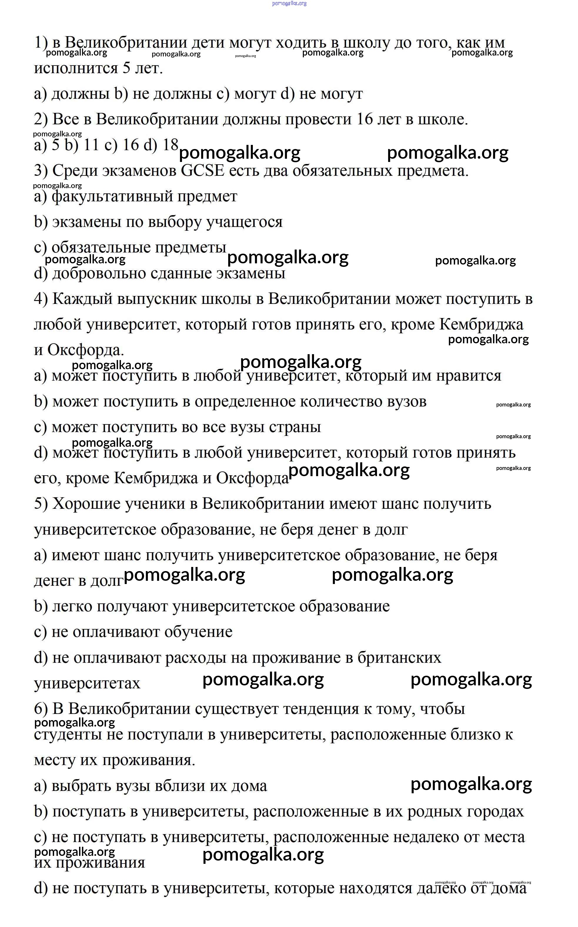 Готовые ответы - Английский язык 11 класс Афанасьева rainbow - step 4 Unit 1 5