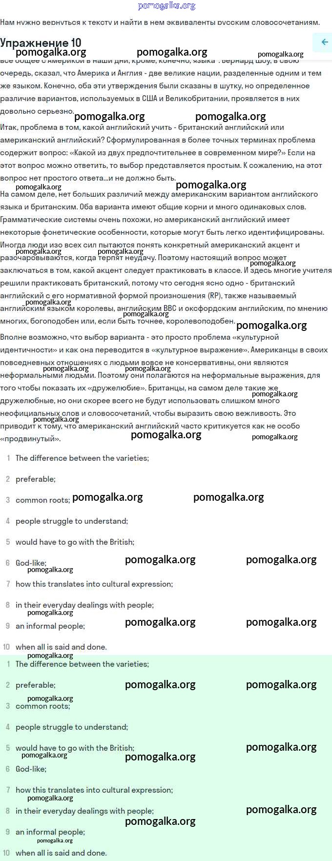 Готовые ответы - Английский язык 11 класс Афанасьева rainbow - step 6 Unit 1 10
