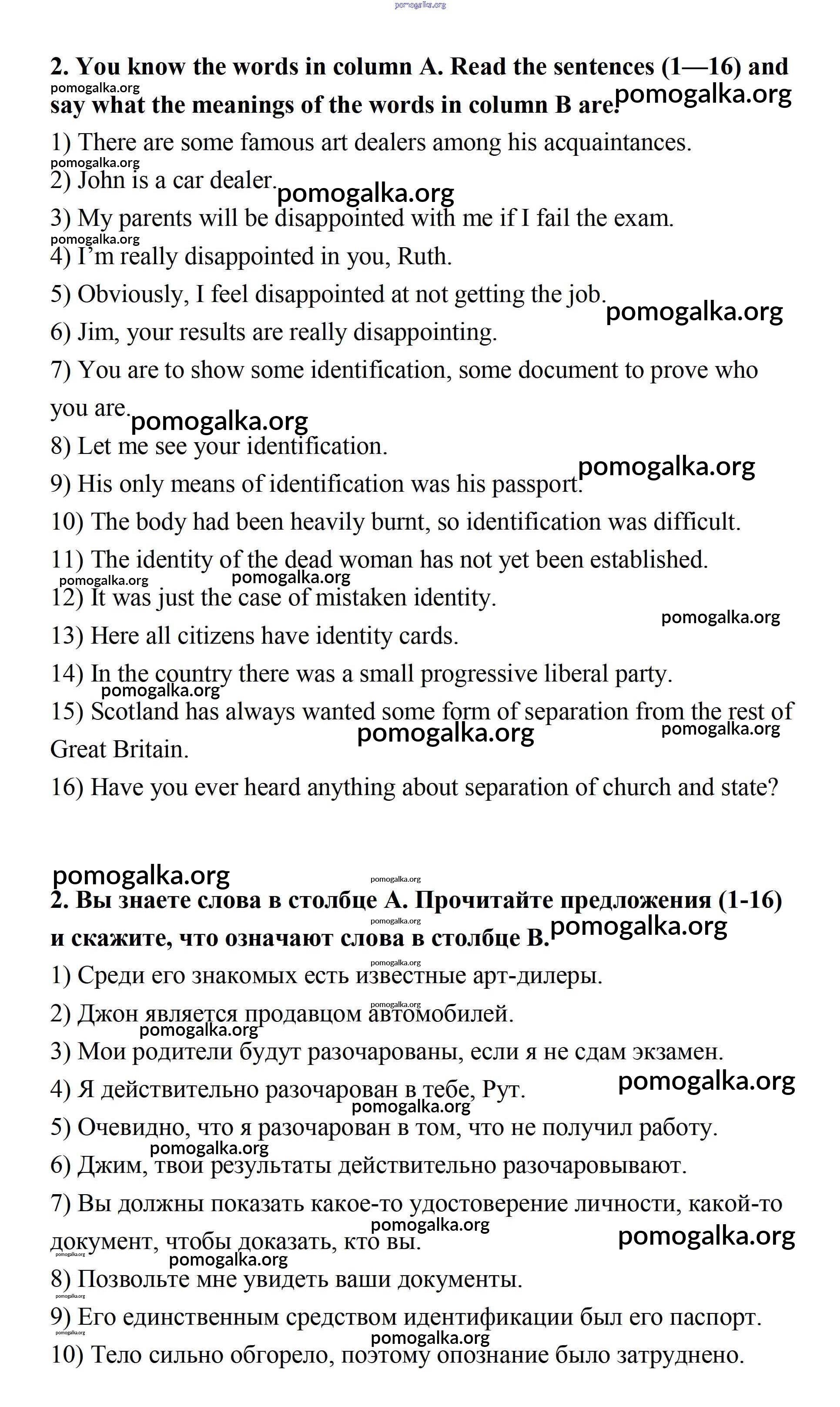 Готовые ответы - Английский язык 11 класс Афанасьева rainbow - step 7 Unit 1 2