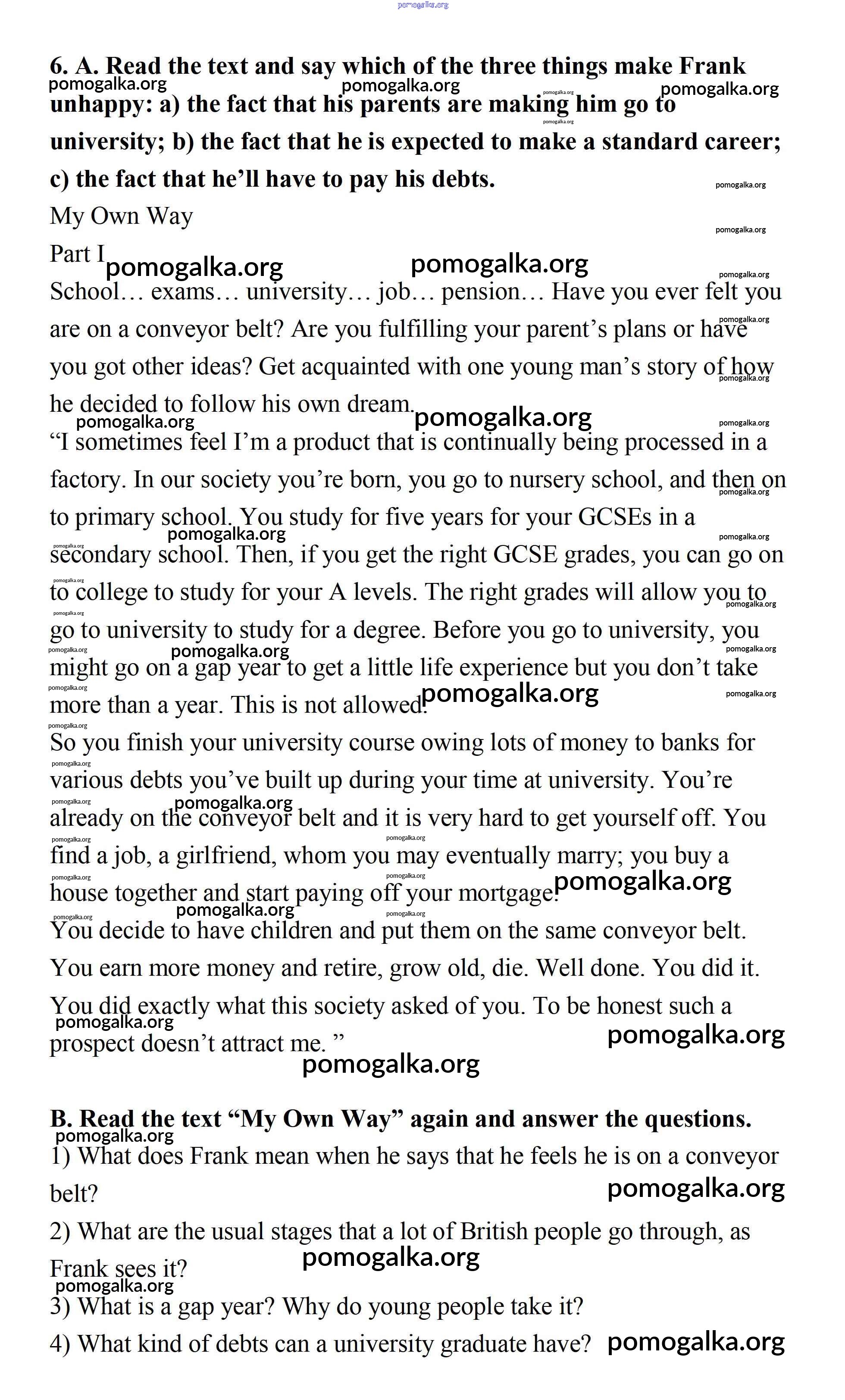 Готовые ответы - Английский язык 11 класс Афанасьева rainbow - step 7 Unit 1 6