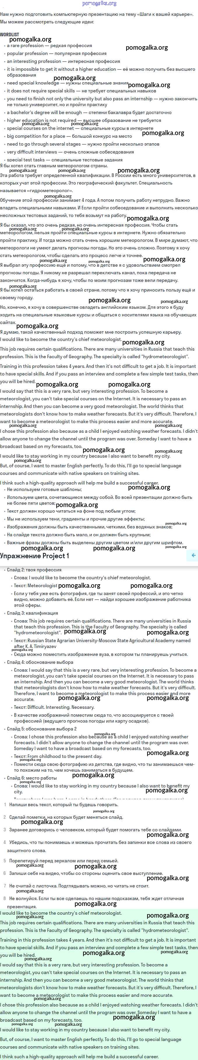 Готовые ответы - Английский язык 11 класс Афанасьева rainbow - step 10 Unit 1 Project