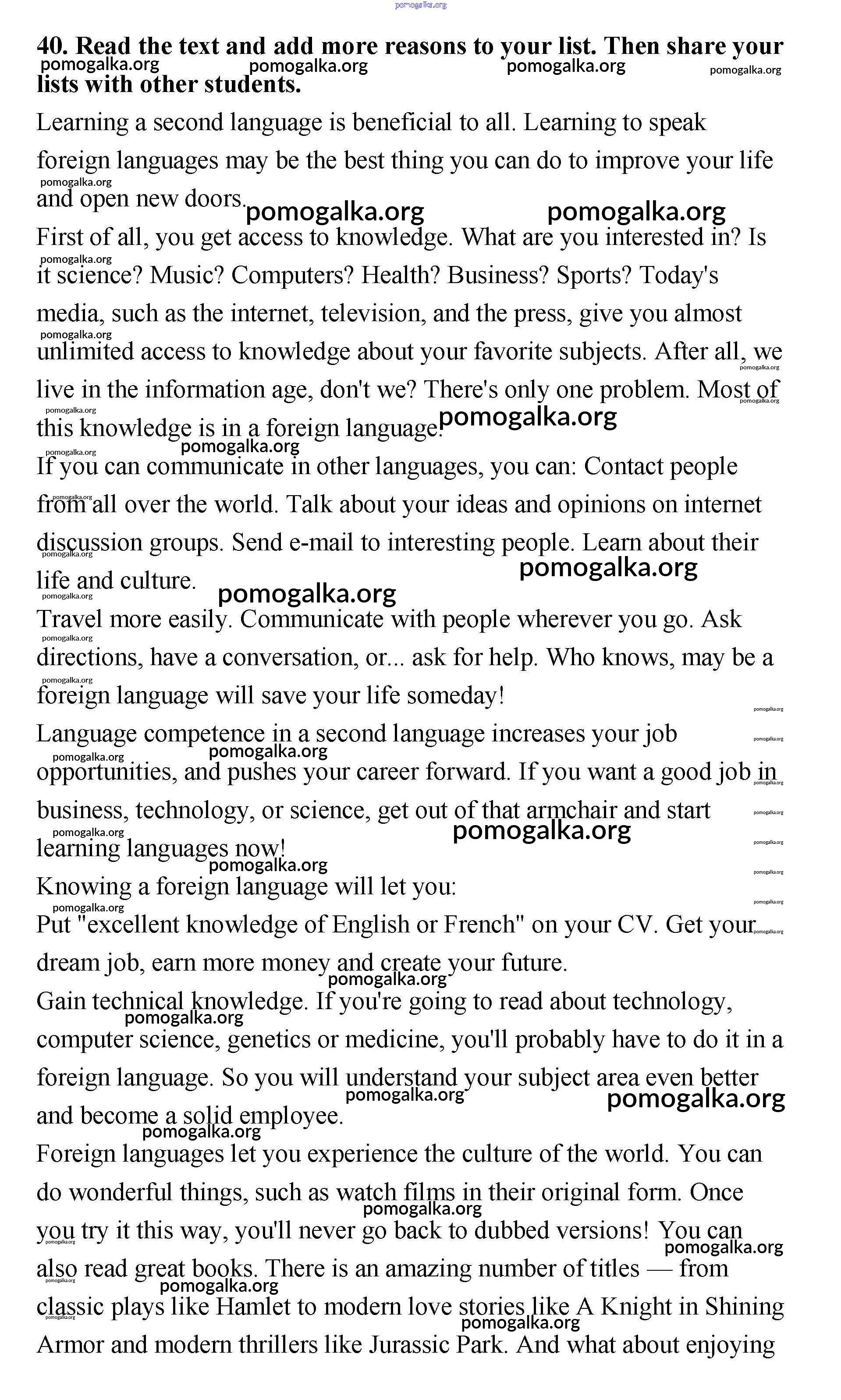 Готовые ответы - Английский язык 11 класс Биболетова - unit 1 40
