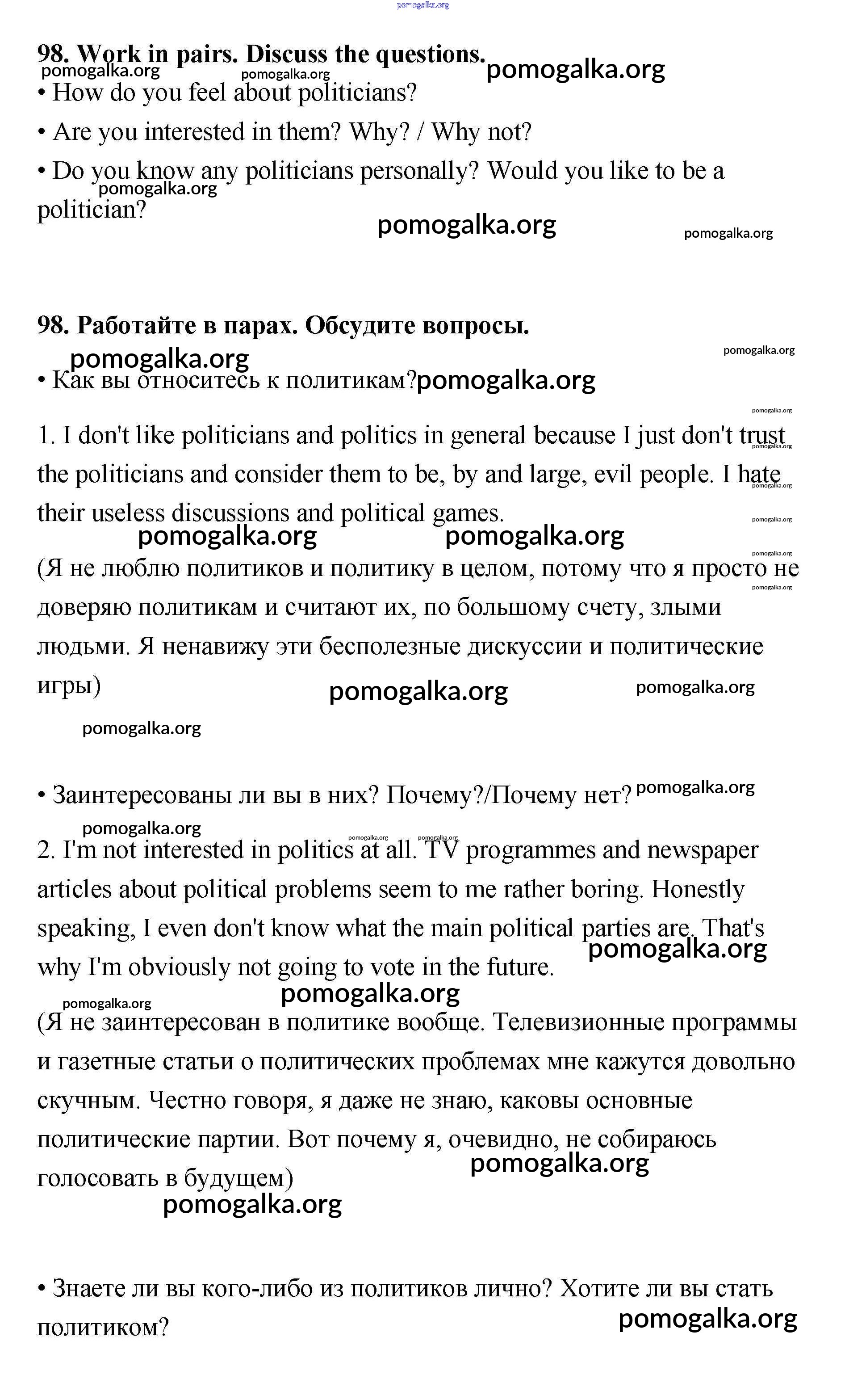 Готовые ответы - Английский язык 11 класс Биболетова - unit 1 98