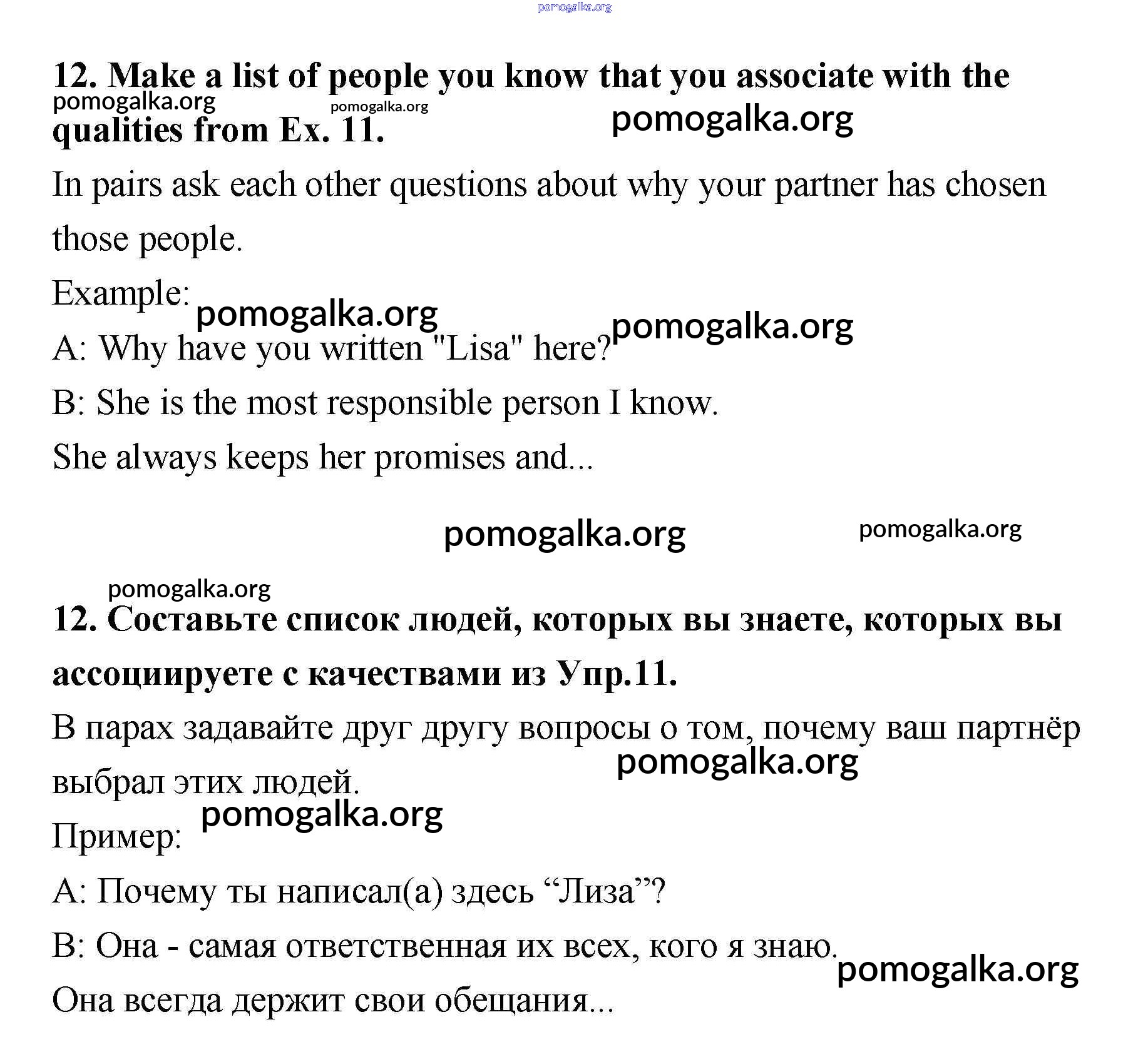 Готовые ответы - Английский язык 11 класс Биболетова - unit 2 12