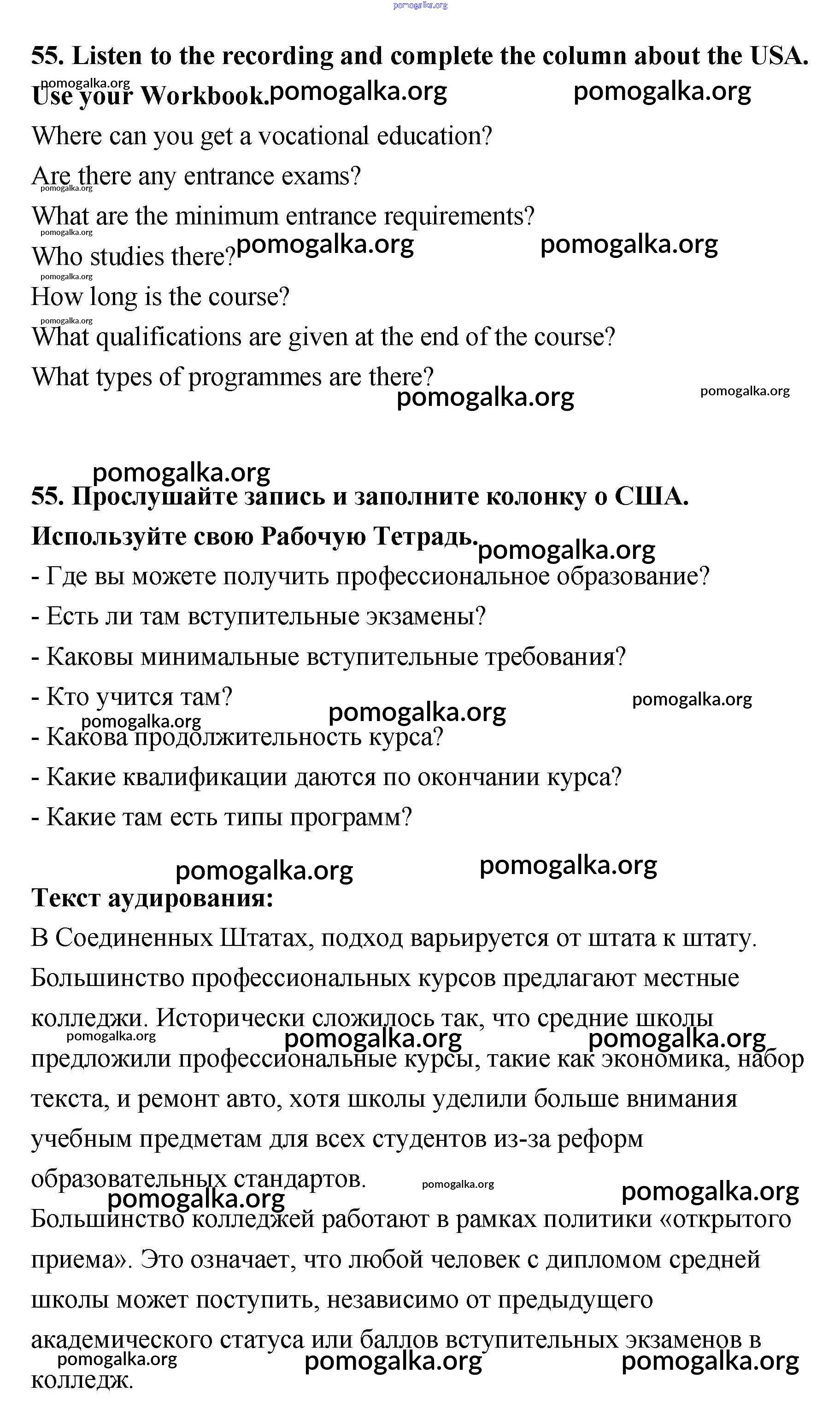 Готовые ответы - Английский язык 11 класс Биболетова - unit 2 55