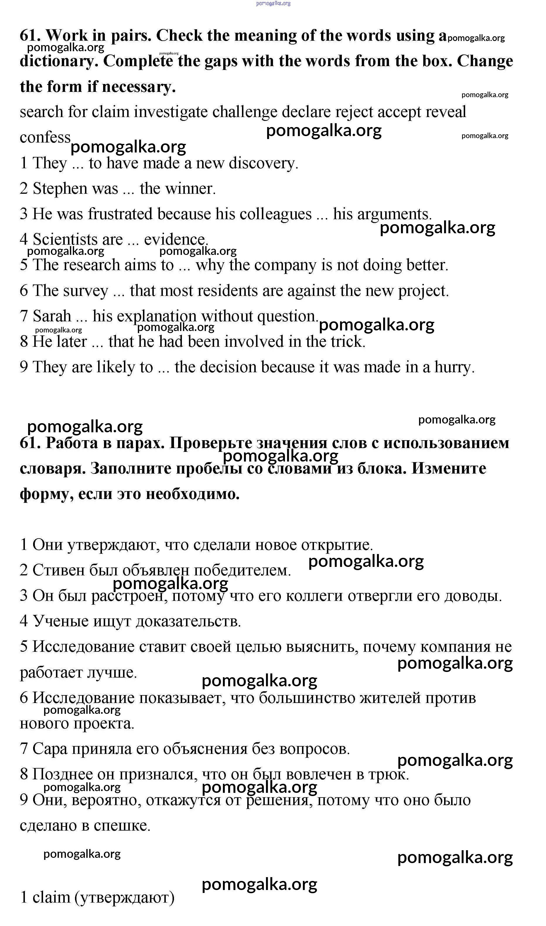 Готовые ответы - Английский язык 11 класс Биболетова - unit 3 61