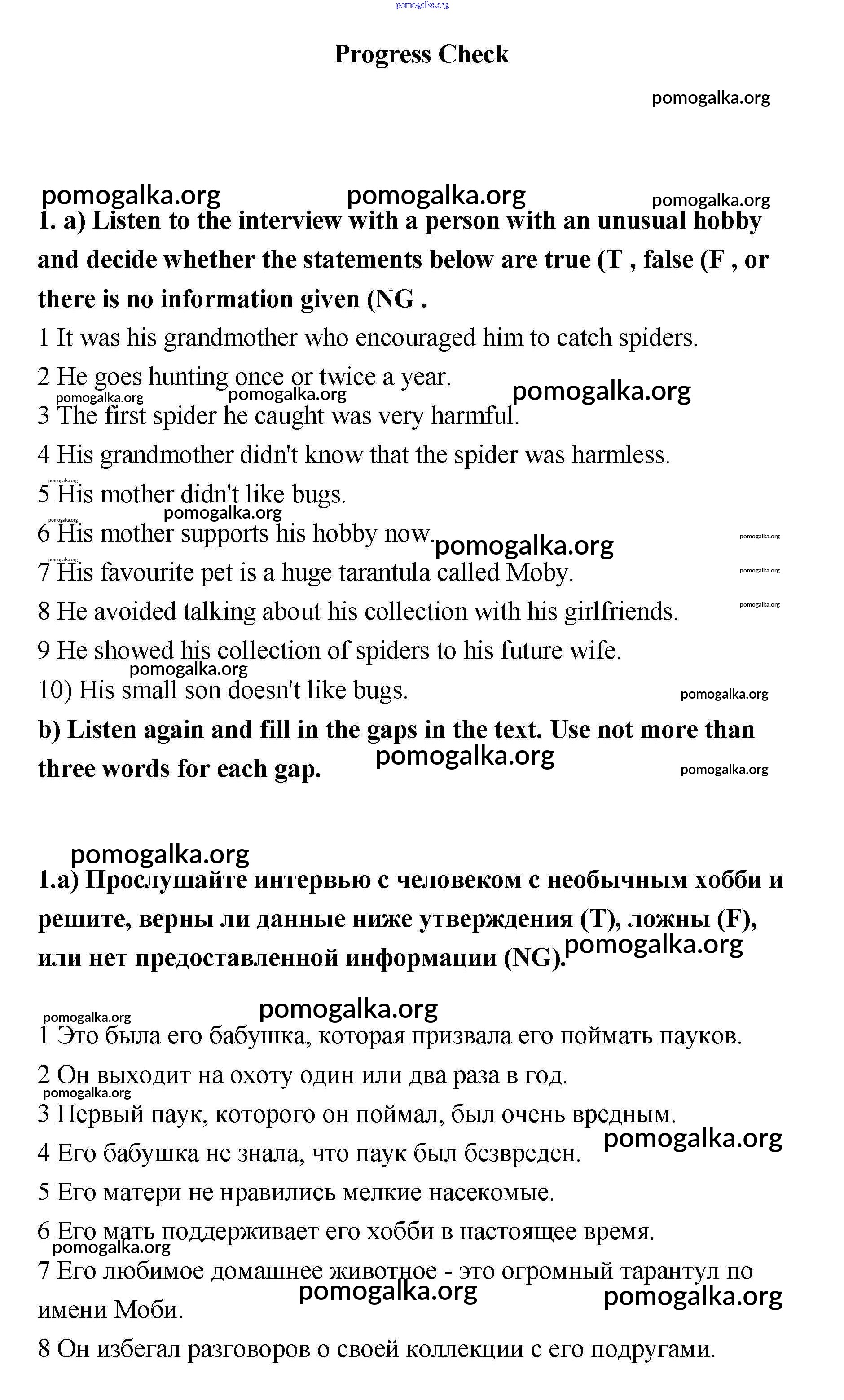 Готовые ответы - Английский язык 11 класс Биболетова - progress check unit 4 1