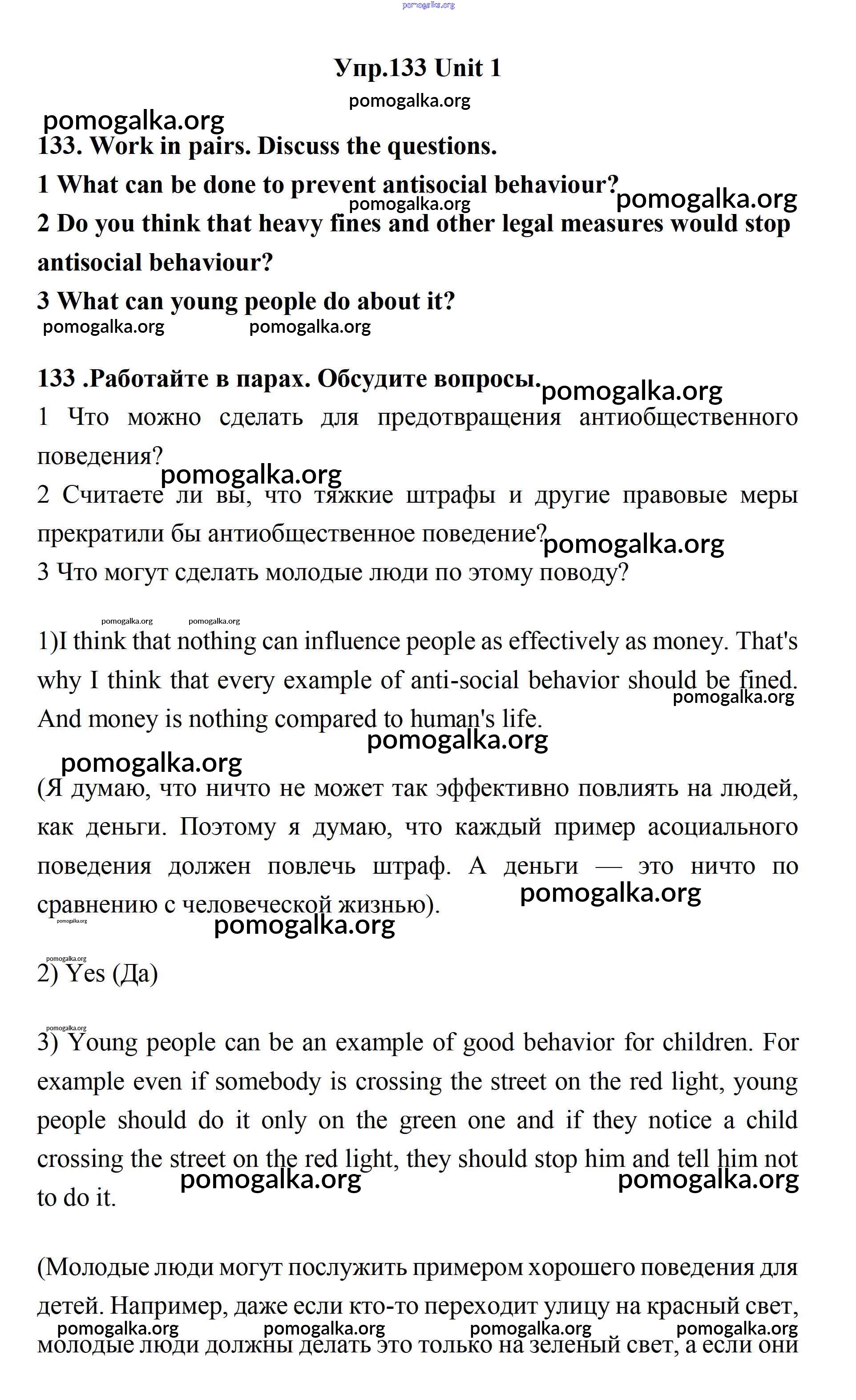 Готовые ответы - Английский язык 11 класс Биболетова - unit 1. young people in society 133