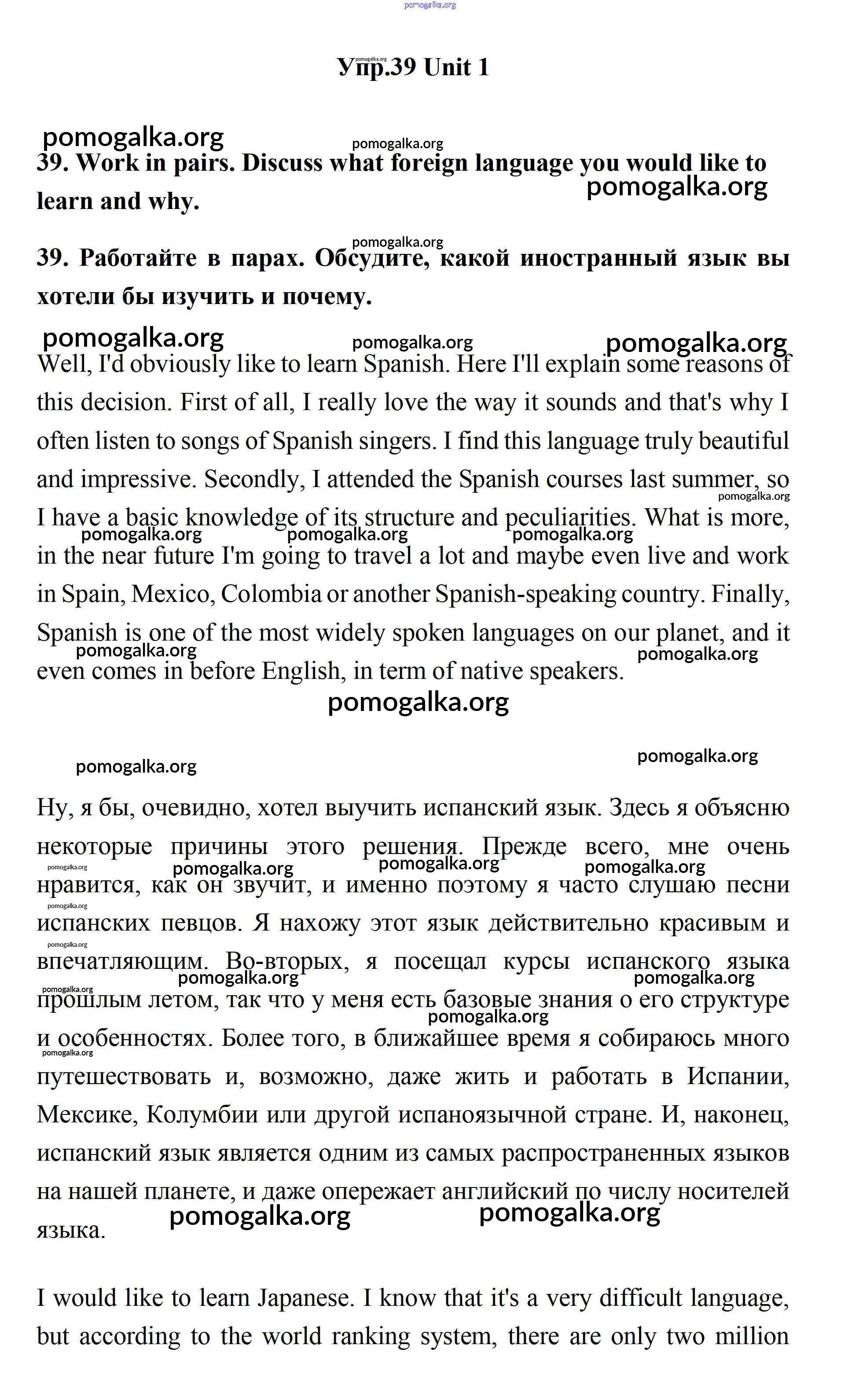 Готовые ответы - Английский язык 11 класс Биболетова - unit 1. young people in society 39