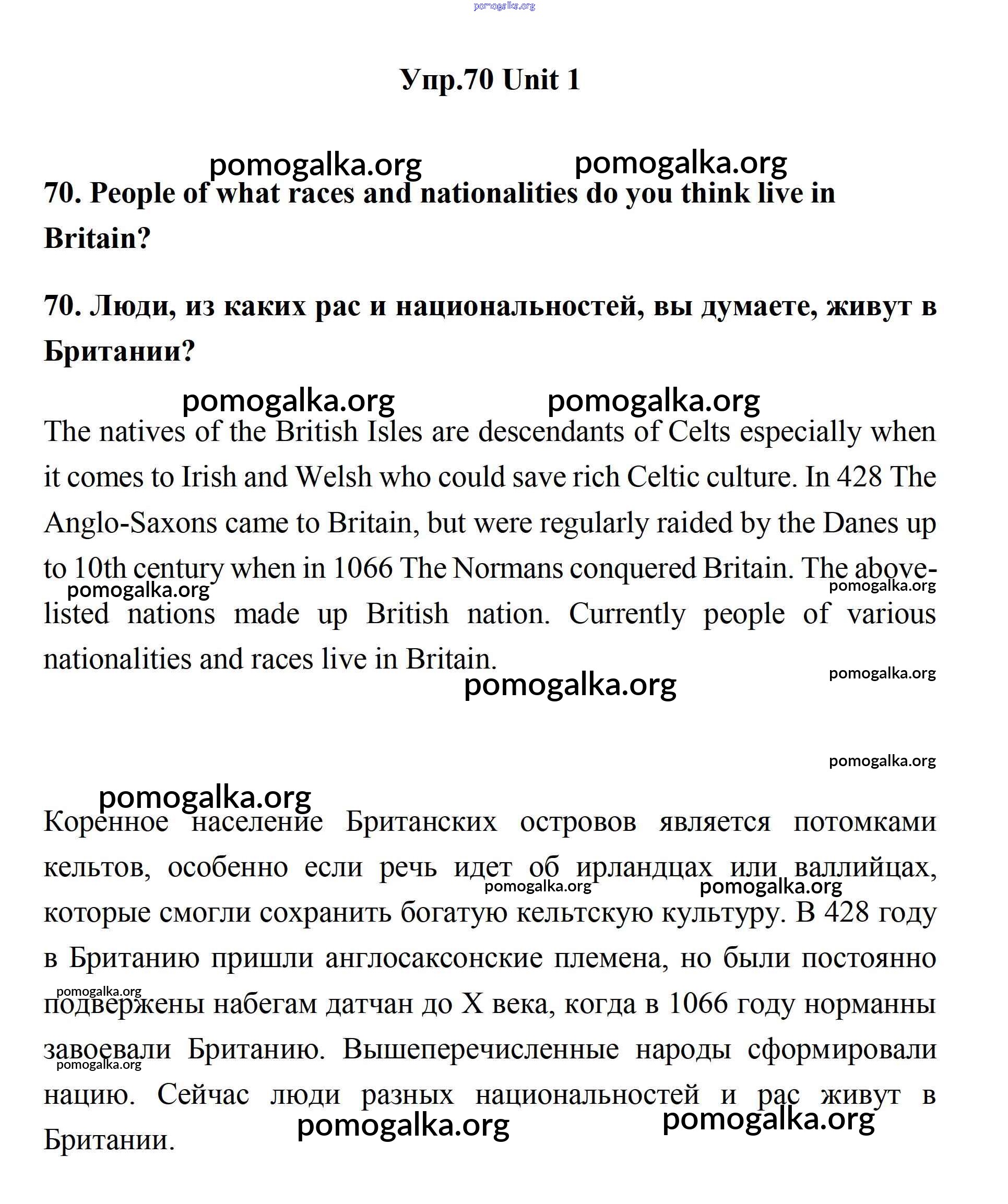 Готовые ответы - Английский язык 11 класс Биболетова - unit 1. young people in society 70