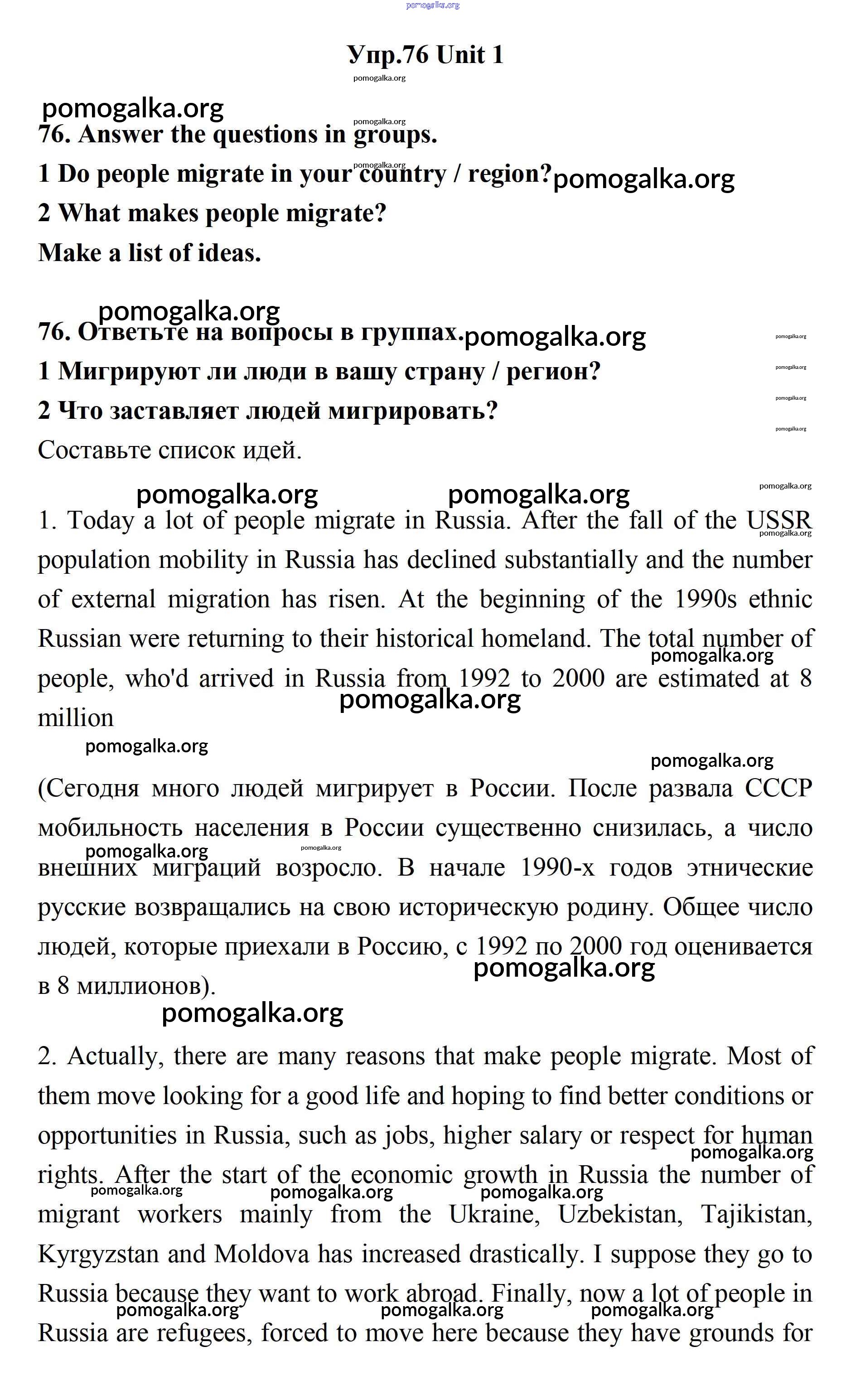 Готовые ответы - Английский язык 11 класс Биболетова - unit 1. young people in society 76