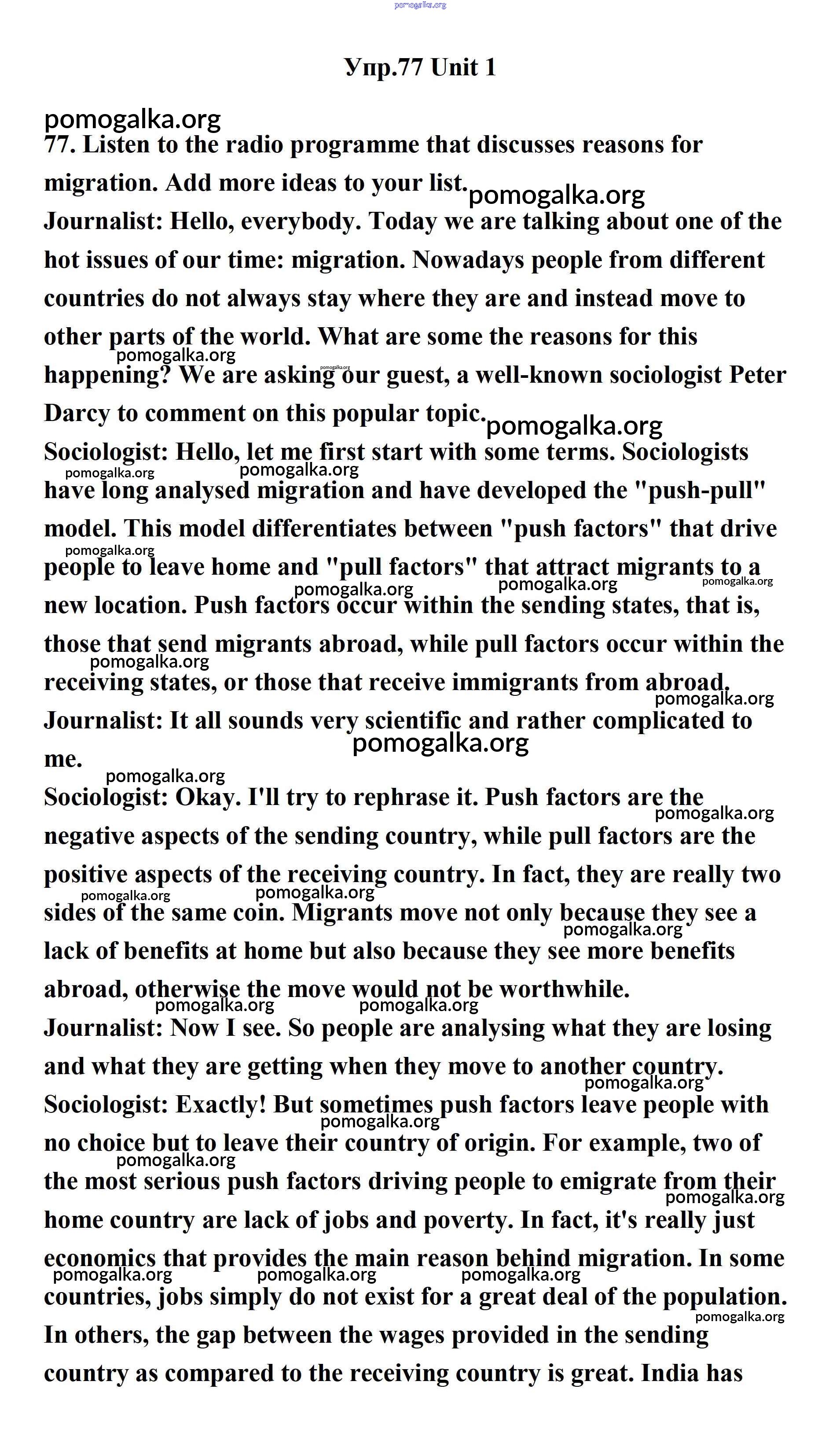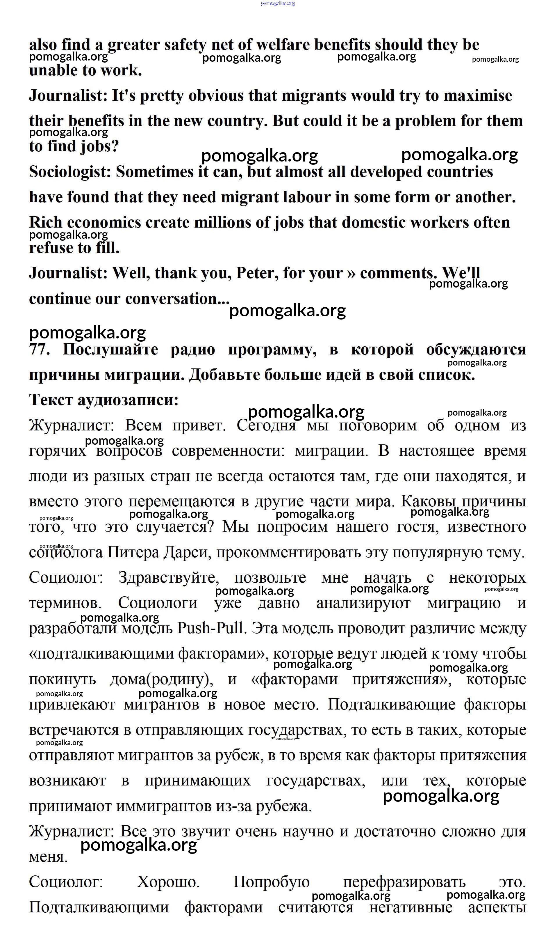 Готовые ответы - Английский язык 11 класс Биболетова - unit 1. young people in society 77