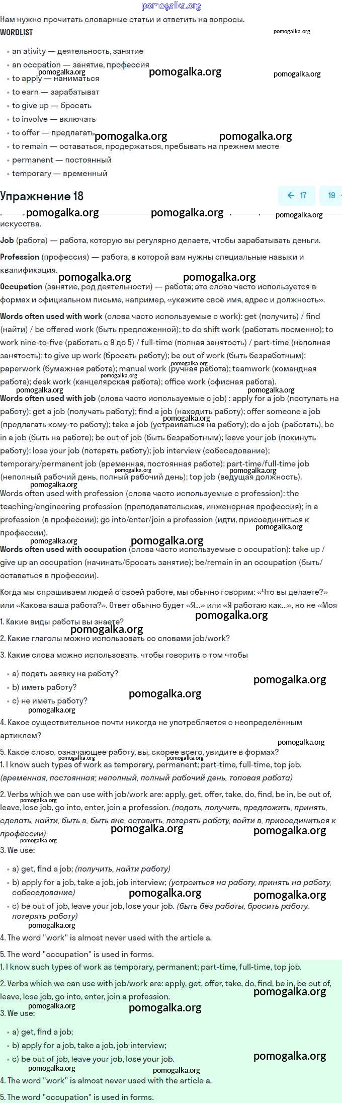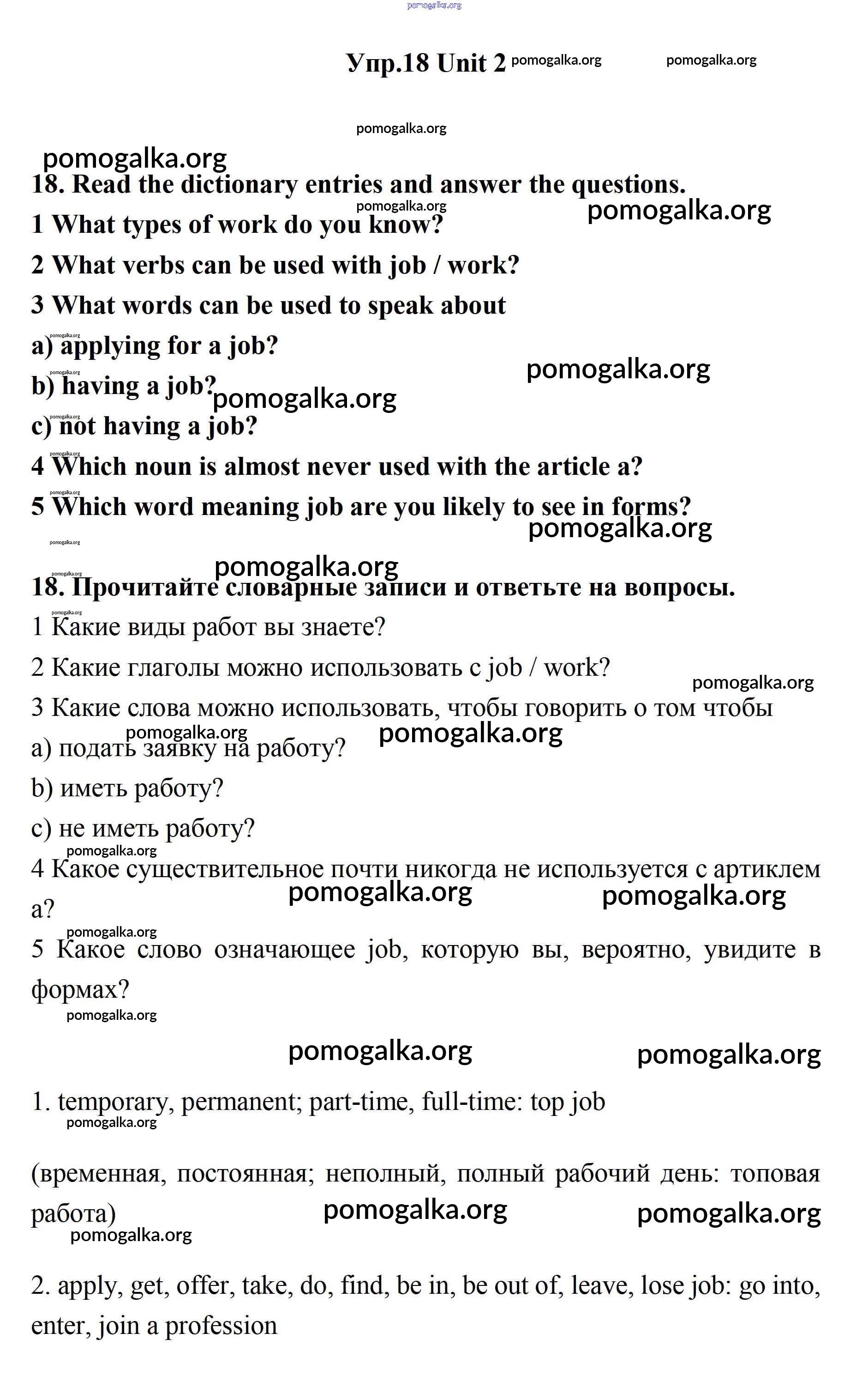 Готовые ответы - Английский язык 11 класс Биболетова - unit 2. your dream job 18