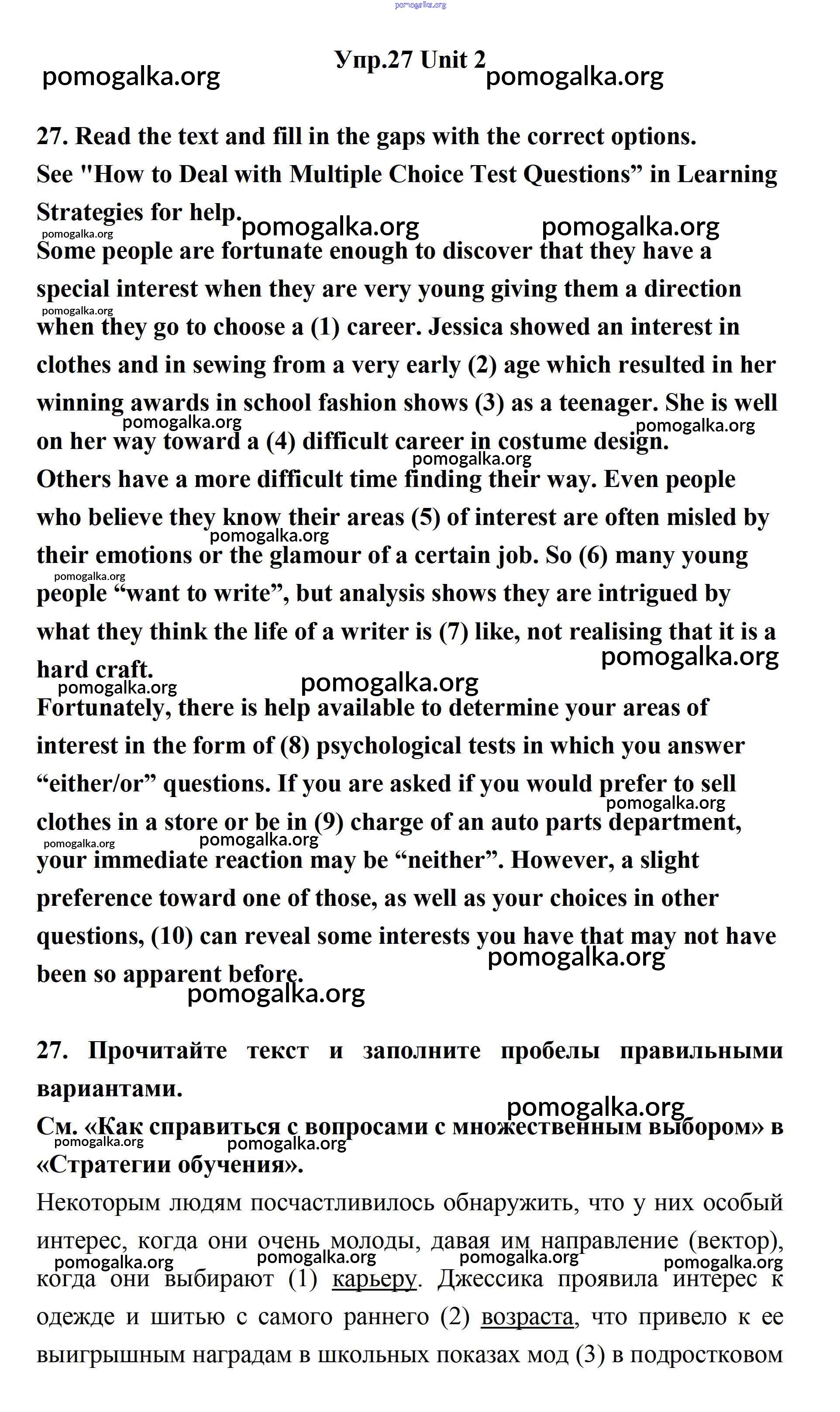 Готовые ответы - Английский язык 11 класс Биболетова - unit 2. your dream job 27