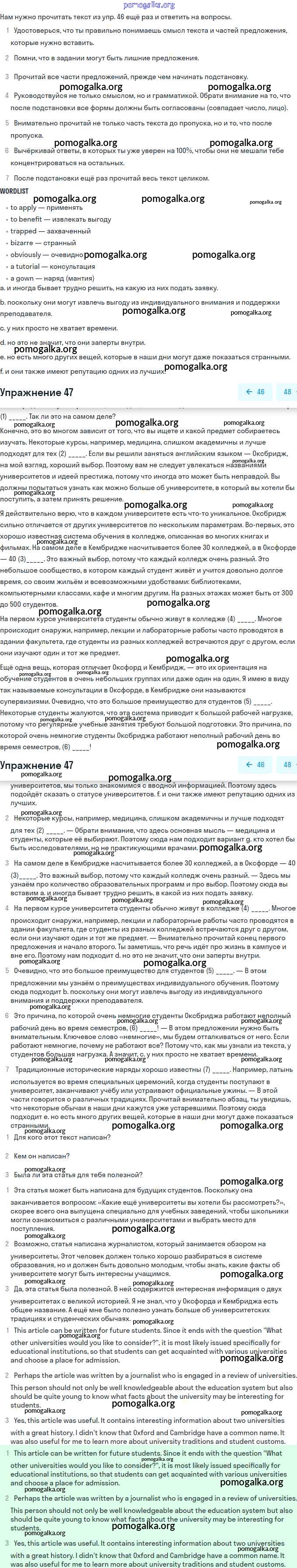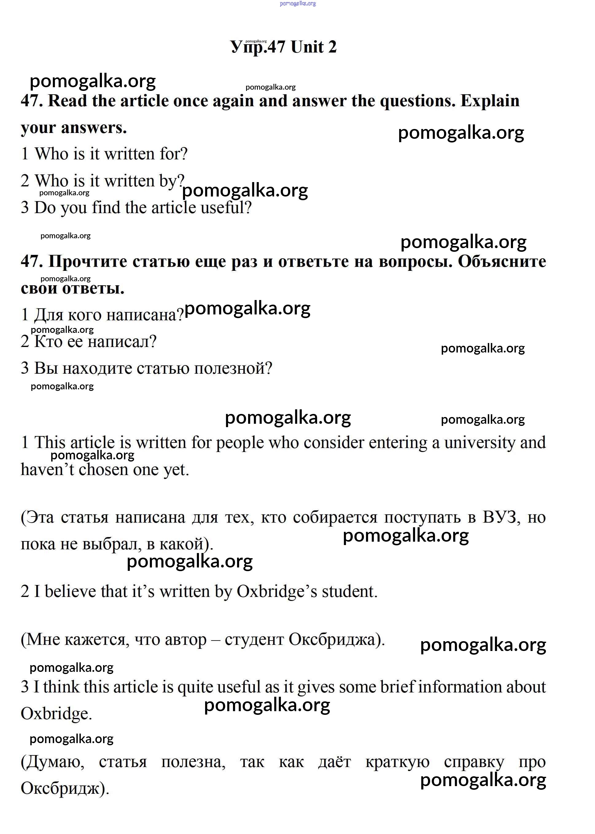 Готовые ответы - Английский язык 11 класс Биболетова - unit 2. your dream job 47