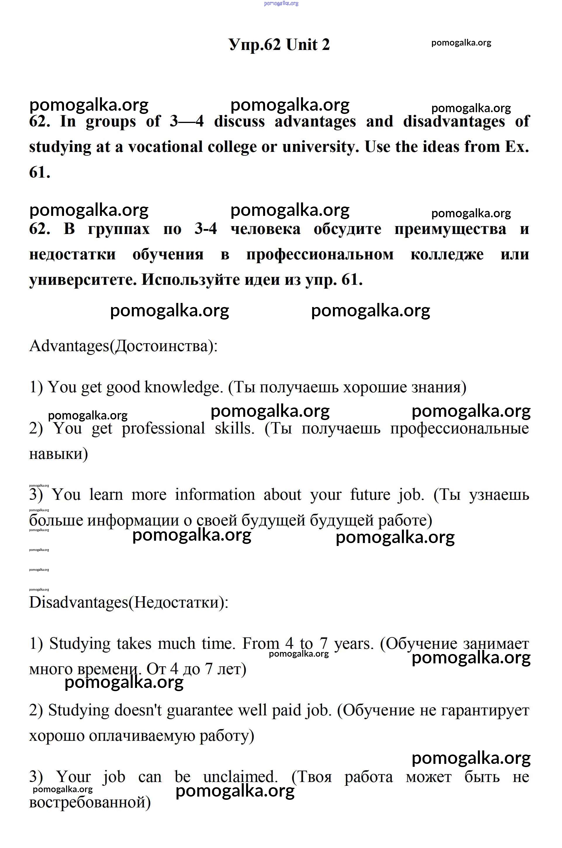 Готовые ответы - Английский язык 11 класс Биболетова - unit 2. your dream job 62