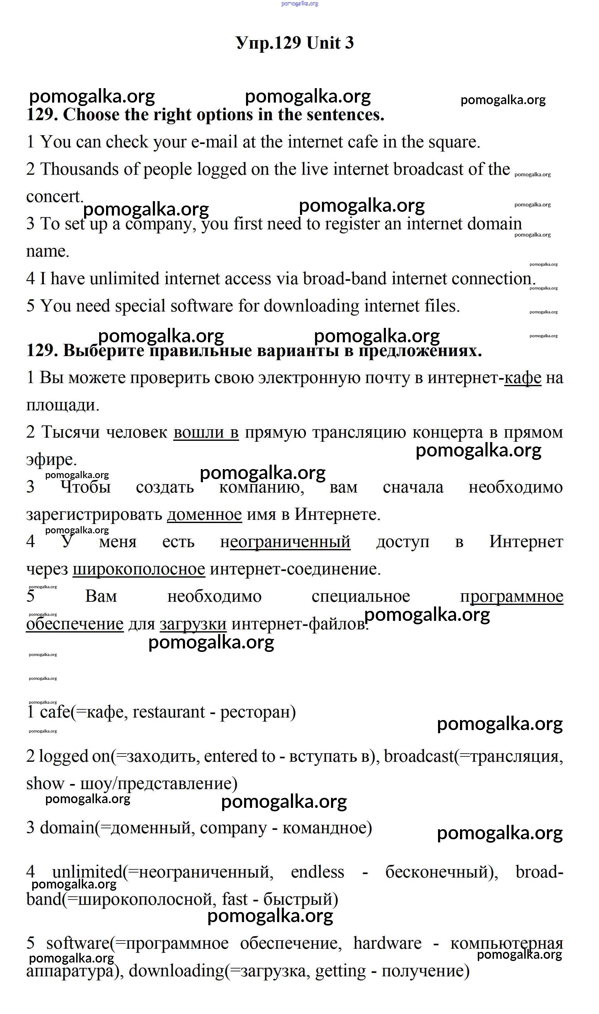 Готовые ответы - Английский язык 11 класс Биболетова - unit 3. new technological world 129