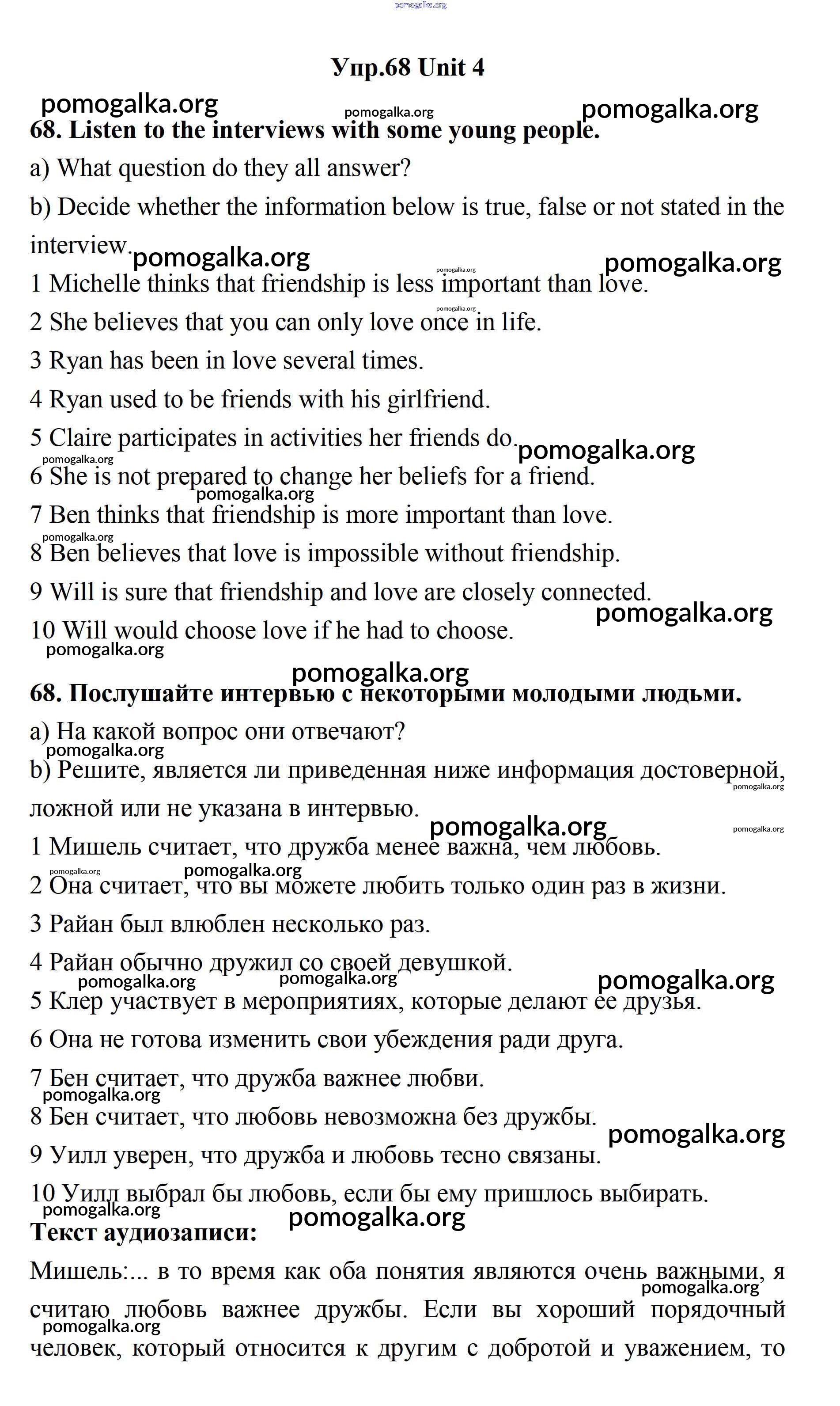 Готовые ответы - Английский язык 11 класс Биболетова - unit 4. what are your whereаbouts? 68