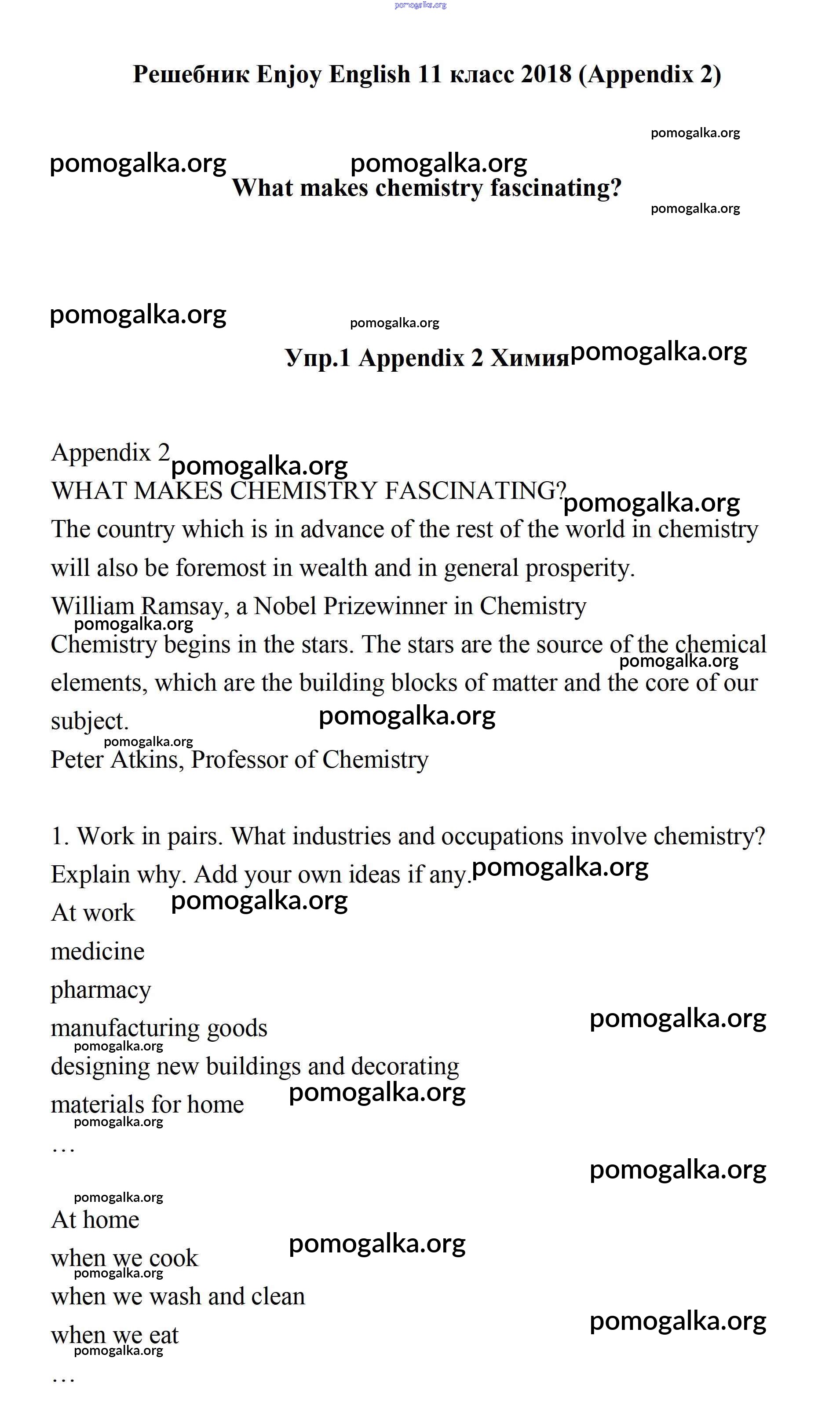 Готовые ответы - Английский язык 11 класс Биболетова - What makes chemistry fascinating? appendix 2 1