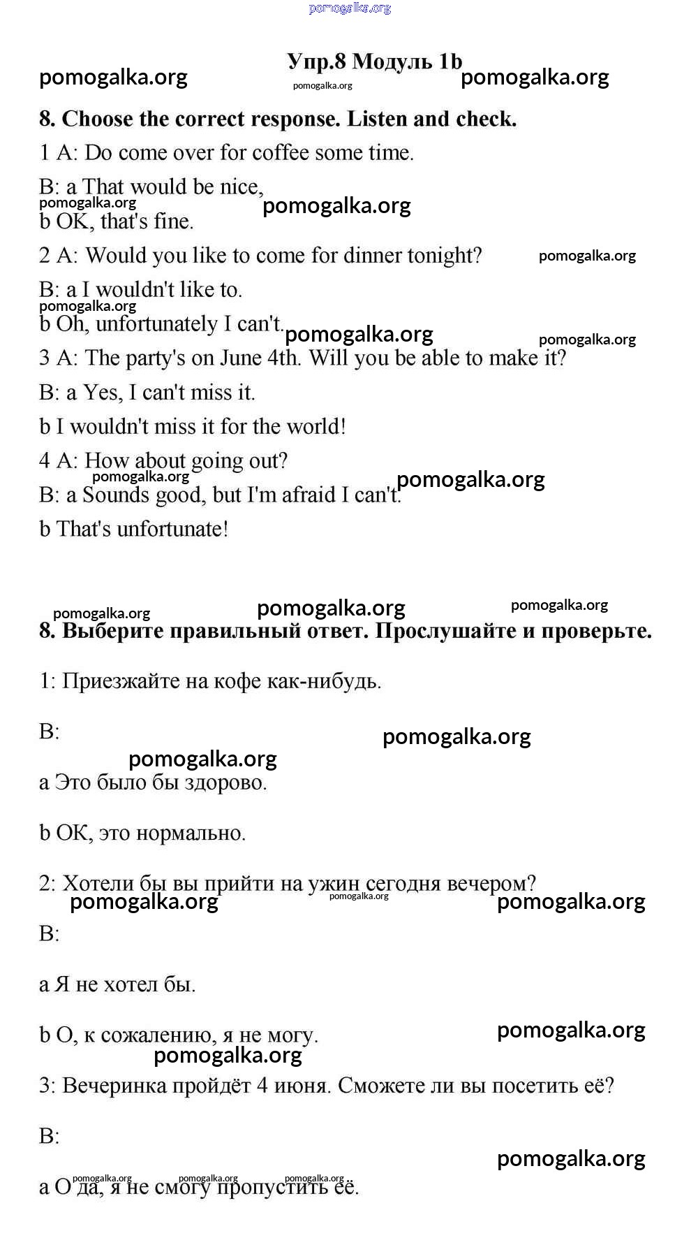 Готовые ответы - Английский язык 11 класс Эванс Spotlight - часть 1b module 1 8