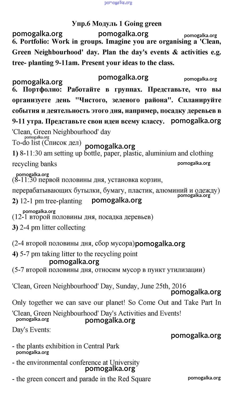 Готовые ответы - Английский язык 11 класс Эванс Spotlight - going green module 1 6