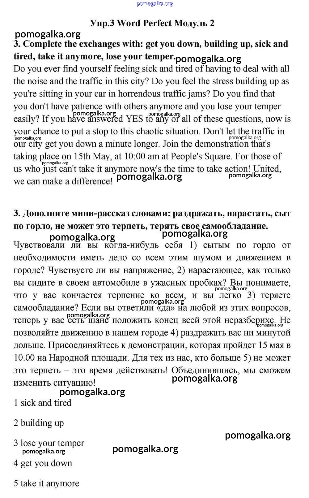 Готовые ответы - Английский язык 11 класс Эванс Spotlight - module 2 work perfect 3