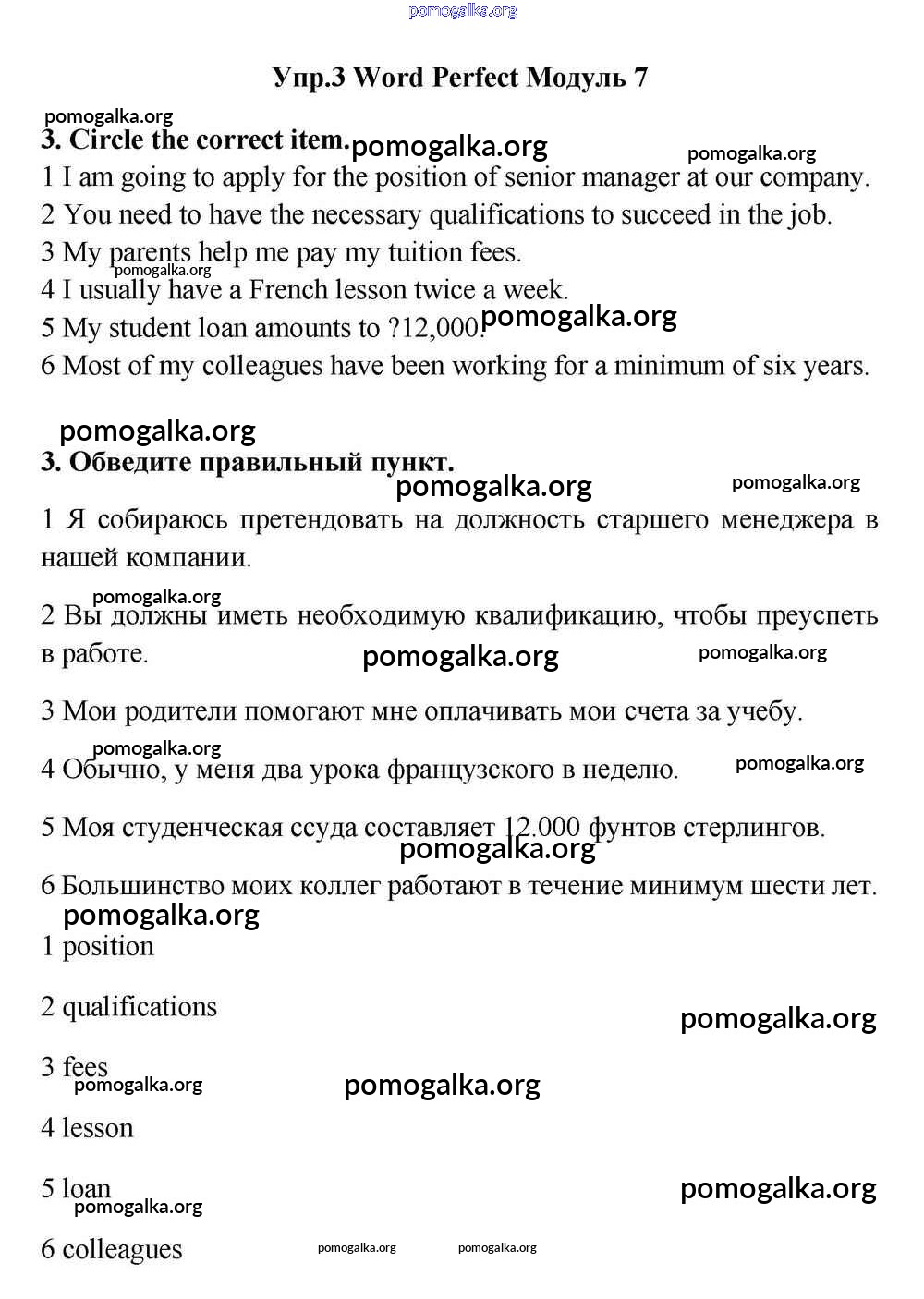 Готовые ответы - Английский язык 11 класс Эванс Spotlight - module 7 work perfect 3